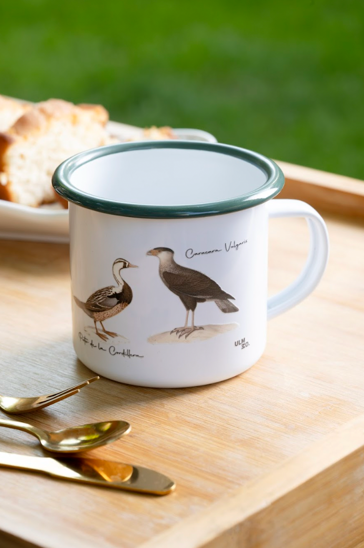 Cada diseño está inspirado en aves nativas de Chile, cuidadosamente reproducido para conservar su belleza y detalle histórico. El tazón combina arte patrimonial con funcionalidad contemporánea, ideal para acompañarte en tus momentos de café, té o excursiones al aire libre.