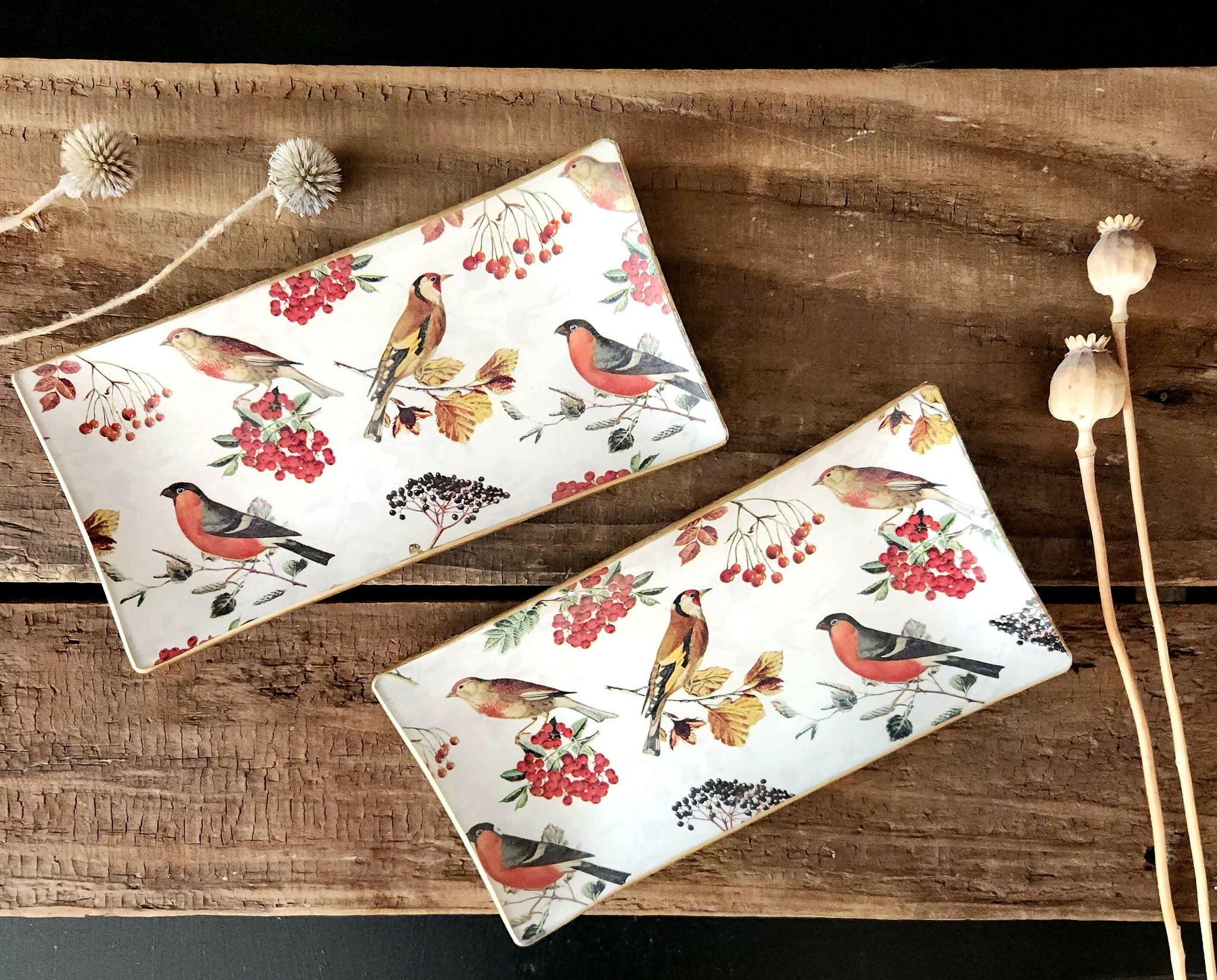 Bandeja Rectangular diseño aves y berries