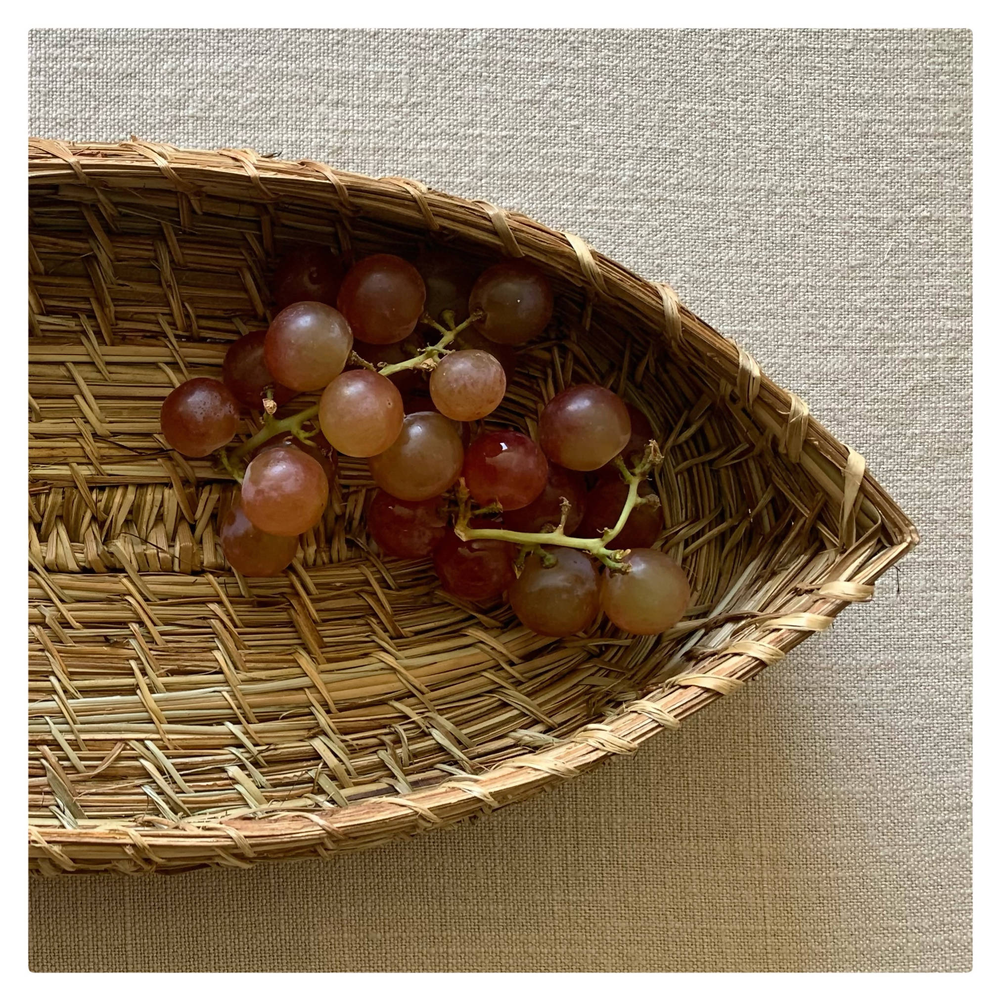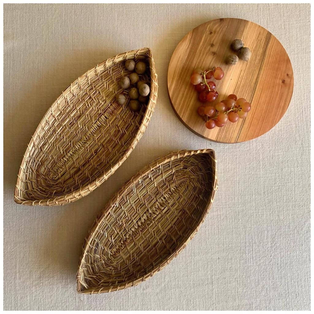 Bote o canoa tejida en ñocha por artesana chilota, decorativa y utilitaria