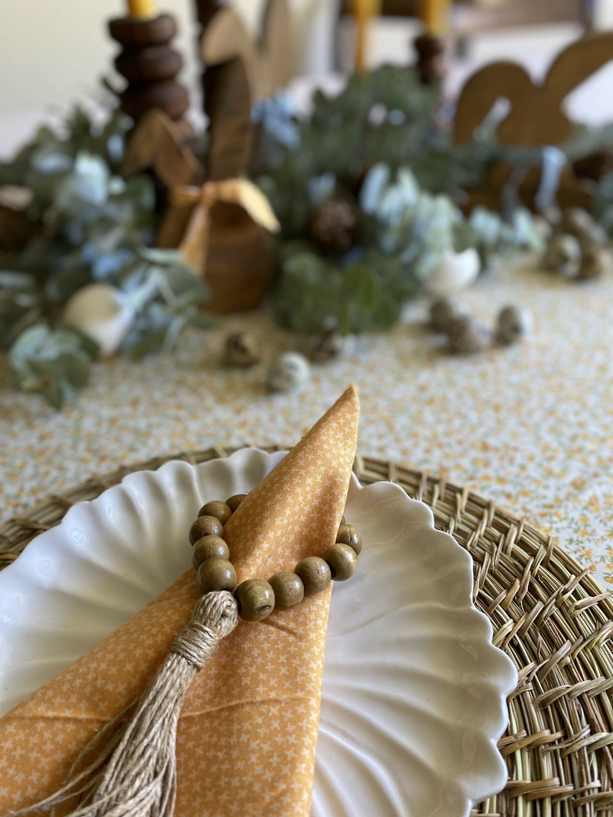 Pon tu mesa linda con estos set de servilleteros fabricados artesanalmente con cuentas de madera y yute.