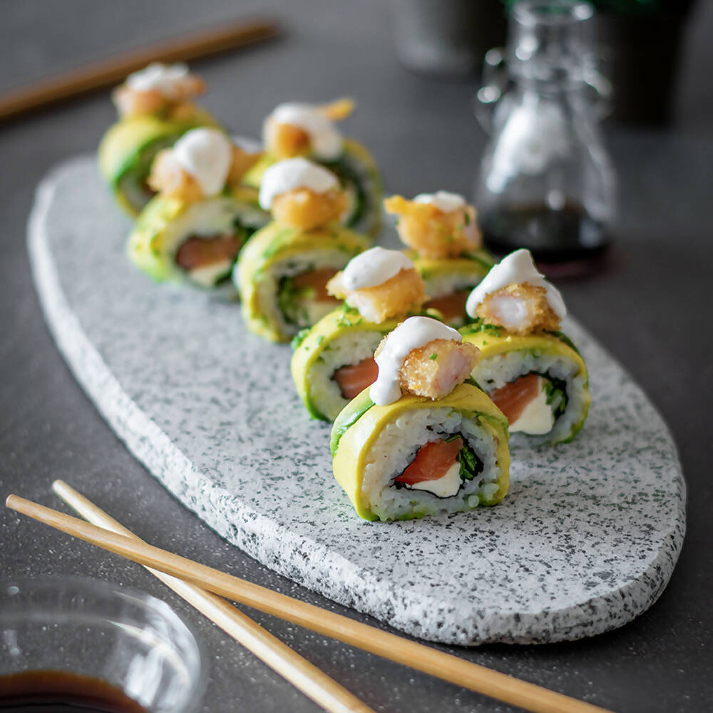 Tus picoteos se verán aun más deliciosos en la increíble tabla alargada grande. Ideal para compartir un sushi o la preparación estrella que tengas en mente.