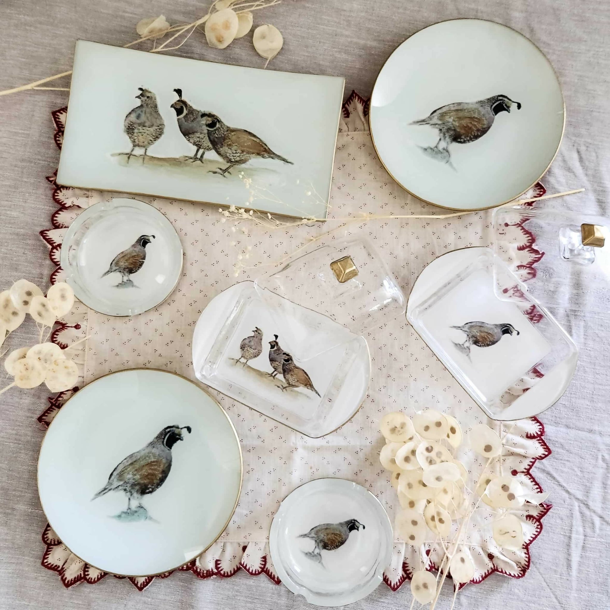 Plato redondo de vidrio templado de 16 cm, con tratamiento artesanal de decoupage. Apto para el lavado a mano y para el uso de comidas o elementos calientes sobre la superficie.