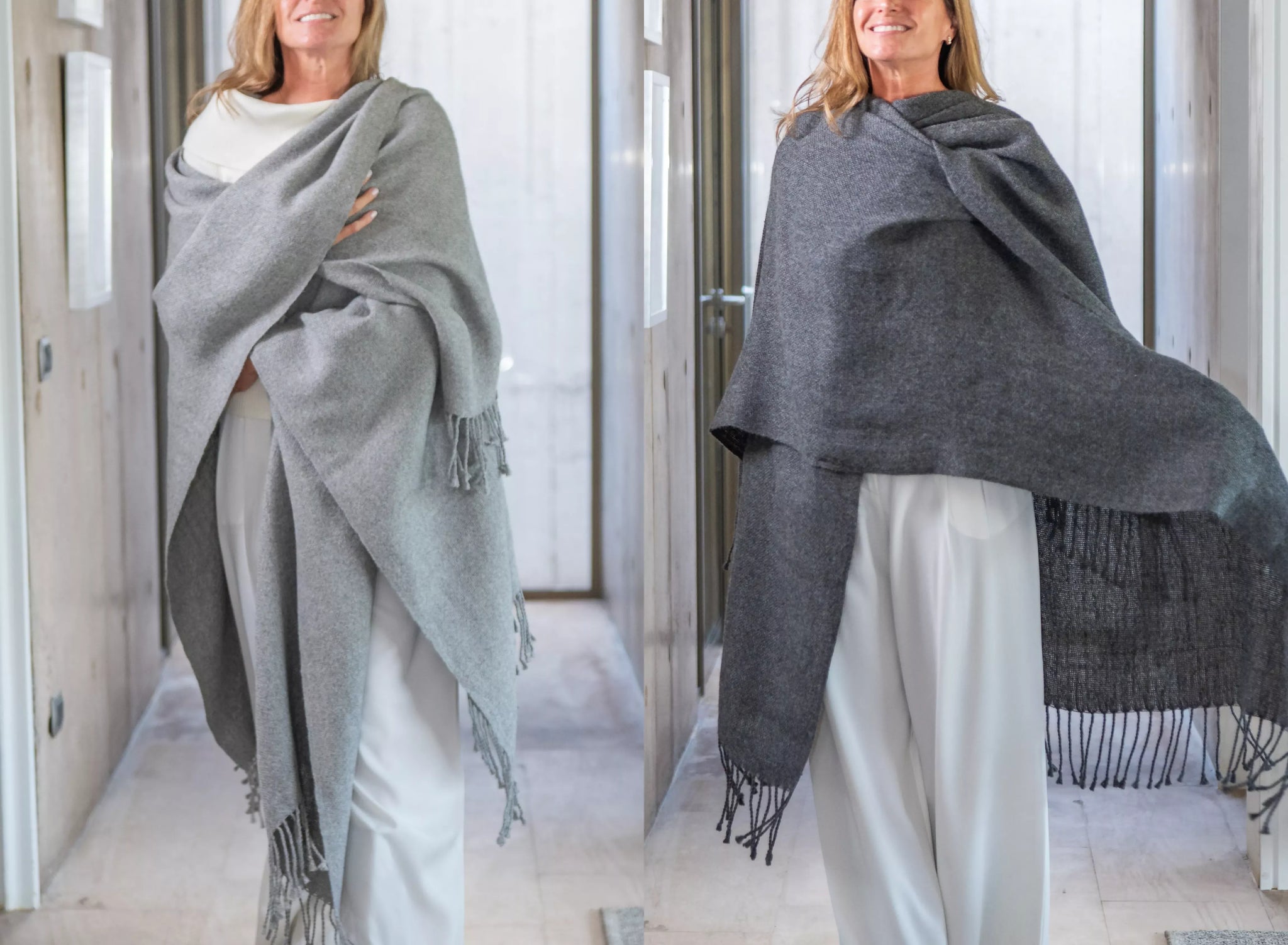 Ruana Alpaca Color Gris Medio