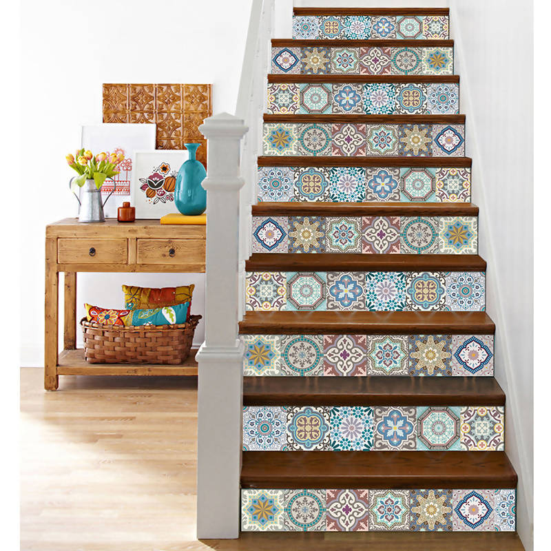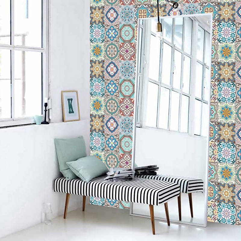 Azulejos de vinilo autoadhesivos de 15x15cm cada uno. Cada paquete trae 12 unidades mixtas, es decir son todas diferentes, tal como se puede ver en la foto.