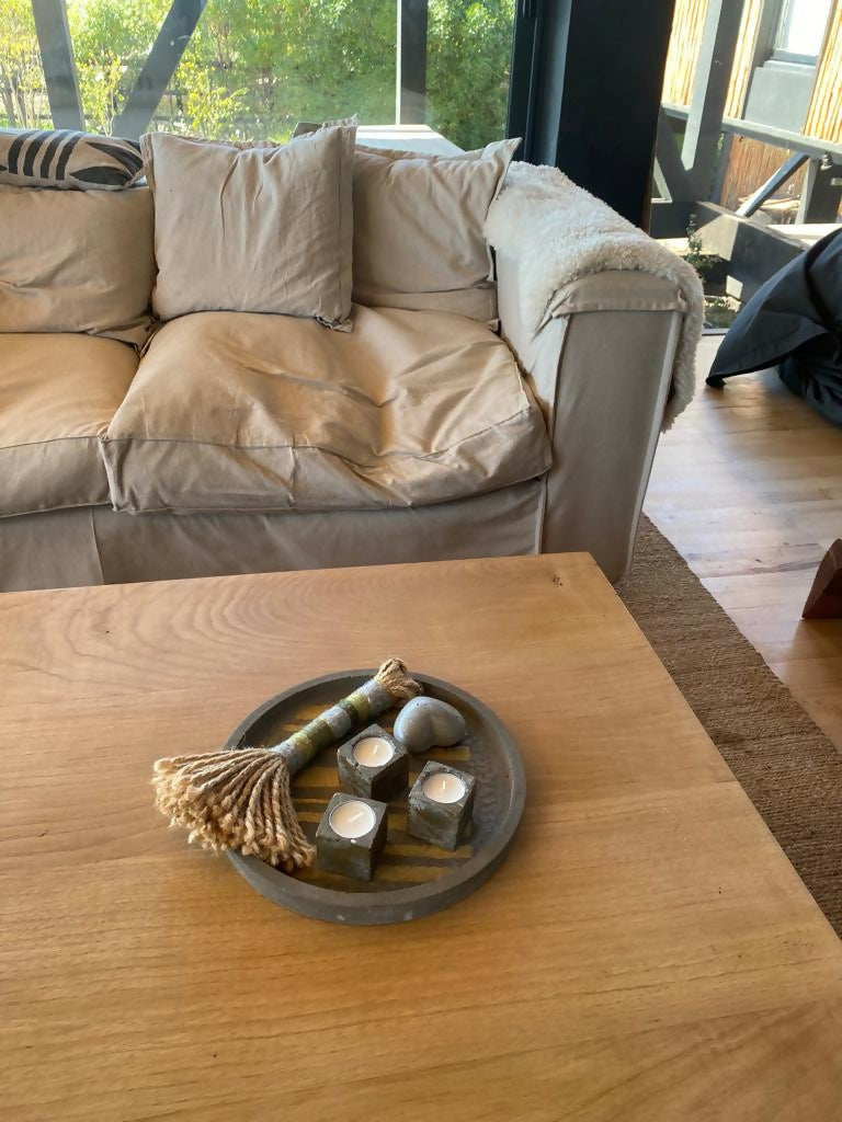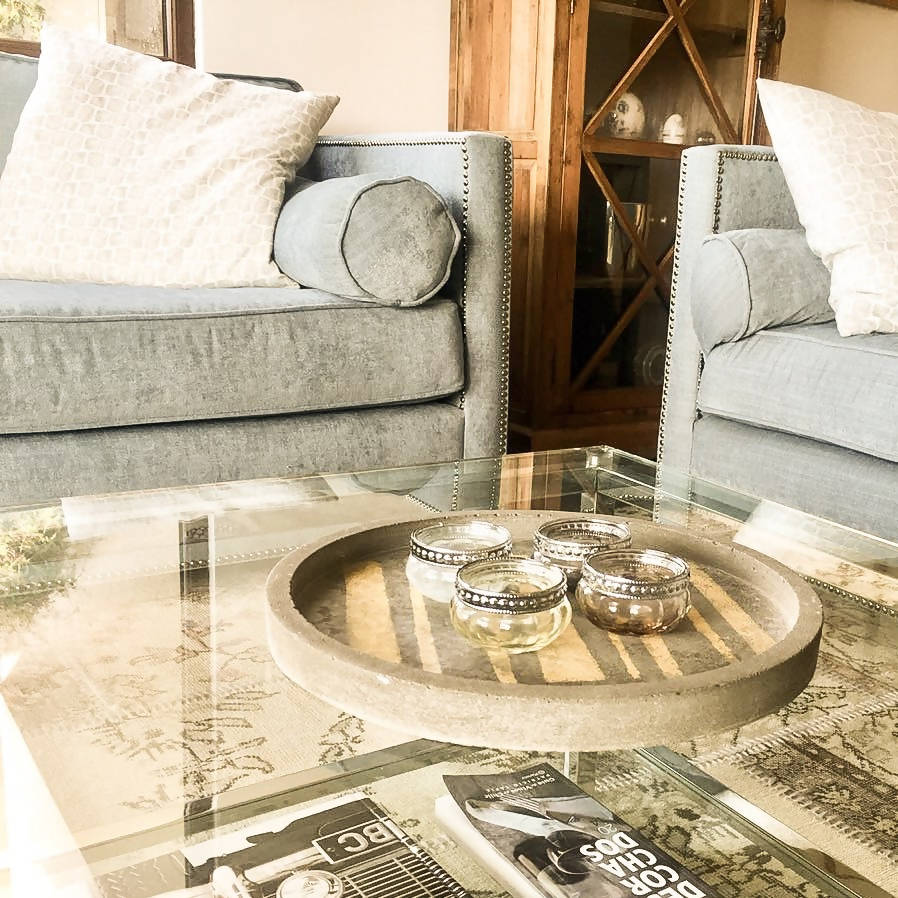 Te presentamos nuestras bandejas decorativas de hormigón natural. Una pieza distinta y llamativa que puedes usar como centro de mesa combinada con velas, jarros de vidrio y elementos ornamentales, o bien, puedes colocar unas copas para el aperitivo o un rico picoteo. Simplemente límpiala con un paño seco o húmedo y vuelve a colocarla como elemento decorativo. A tus invitados les encantará!