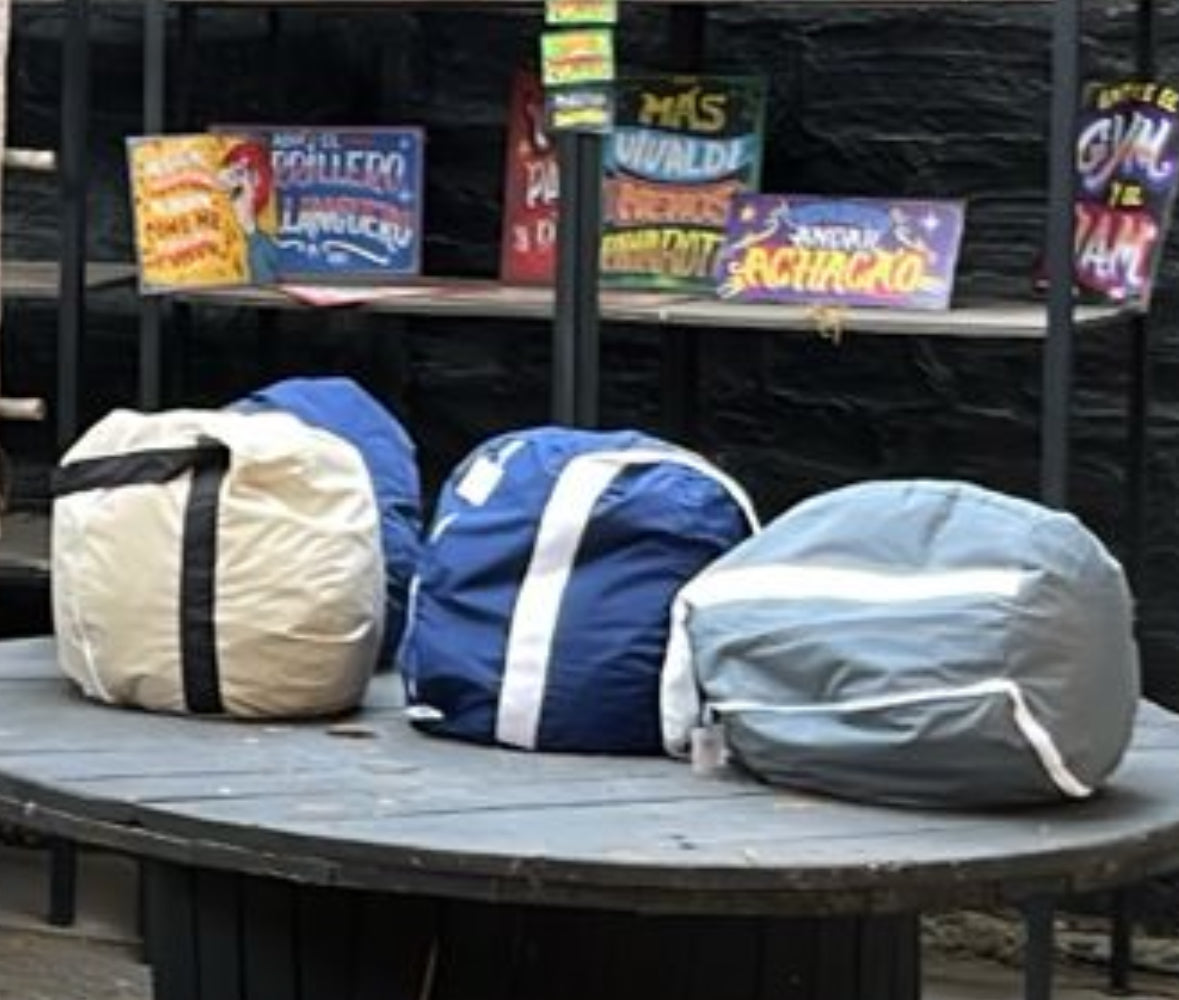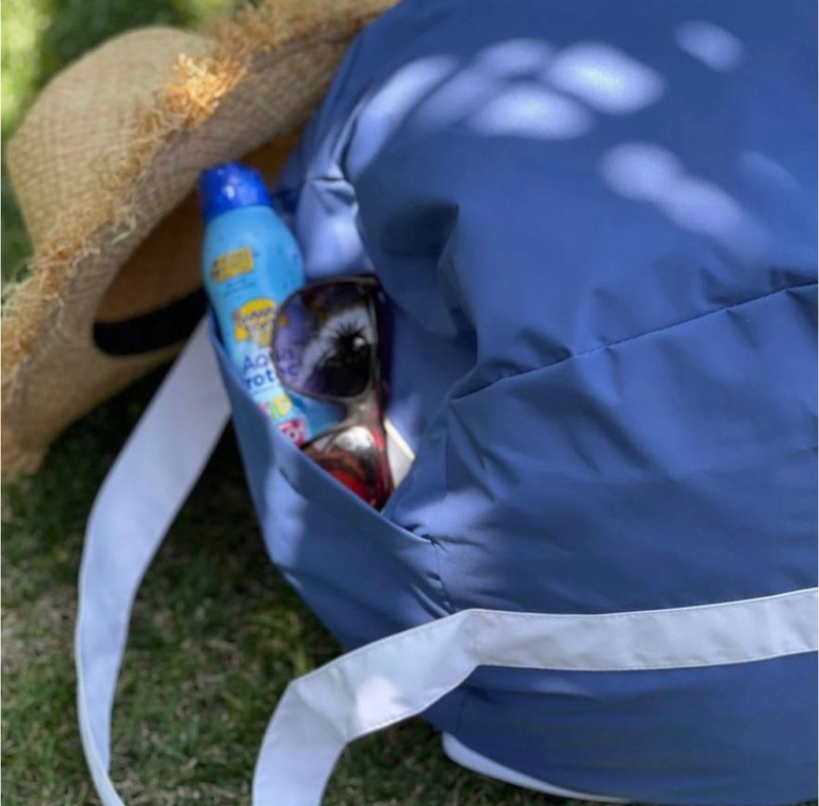 Comodidad, estilo y conveniencia es lo que trae este respaldo / bolsa / pouf con correa transportable y bolsillo con cierre para celular, llaves, etc,.