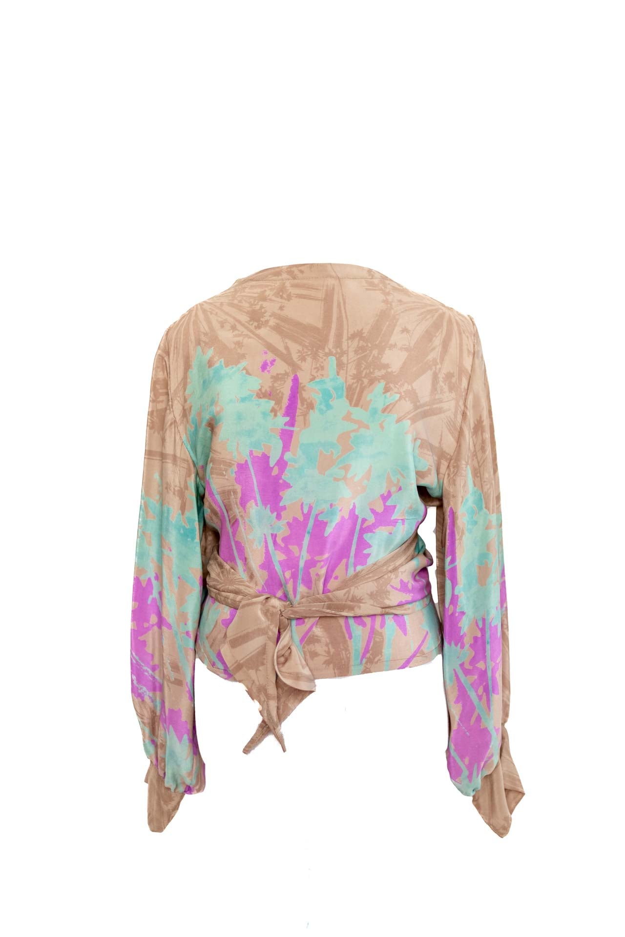 Está confeccionada en seda de antiguos saris indios. Son piezas de seda, únicas, de 5 metros de largo lo que los hace bastante exclusivos, jamás los verás en otra tienda.