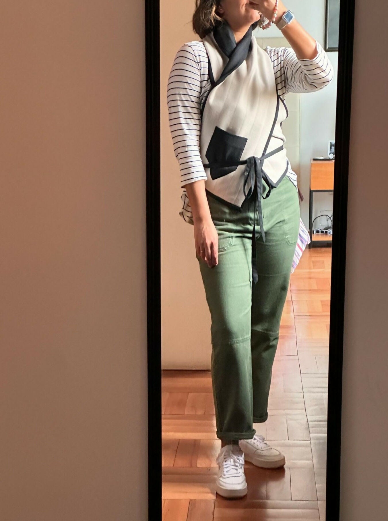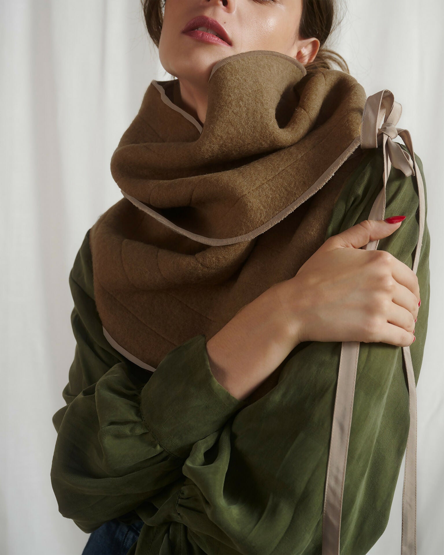 A prueba de vientos extremos, maxi bufanda que puedes usar también tipo chaleco. Tiene un bolsillos para los esenciales. Muy práctico.
