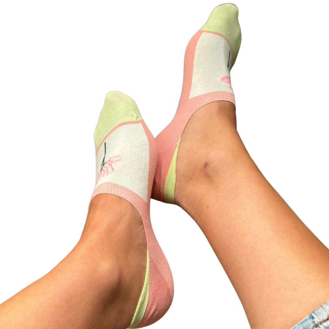 Llegan nuestros primeros diseños de calcetines invisibles de flores. Fabricados con algodón peinado, más suave y resistente, sin costuras en los dedos y con el talón de silicona para evitar que se resbalen.