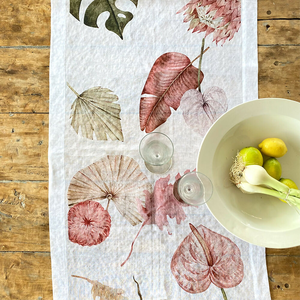 Camino de Mesa Velo de organza (poliester), estampado. 180x60 cm