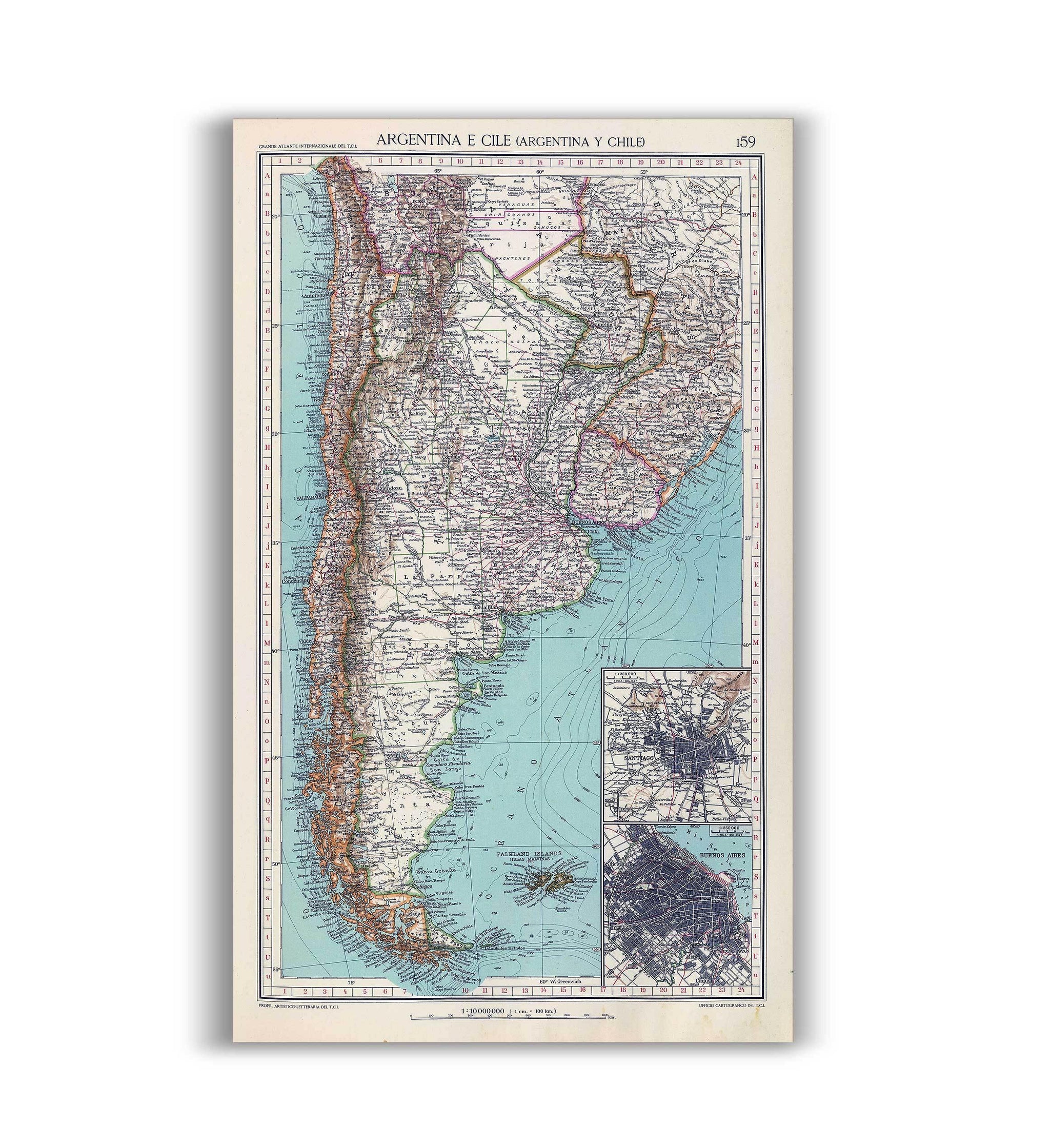 ¡Cuánto detalle! Este gran Mapa del cono sur de América, detalle cientos de ciudades y localidades, pasando principalmente por Chile y Argentina. Además, se ve Bolivia, Uruguay y Paraguay.
