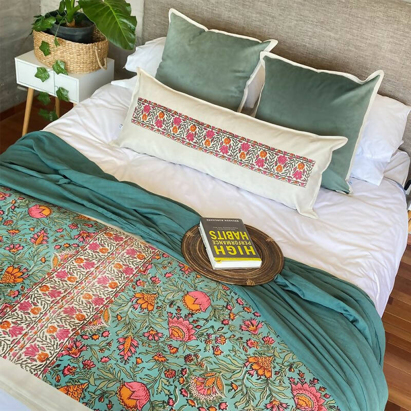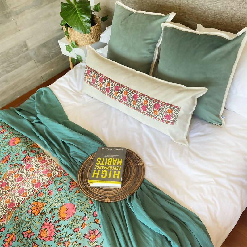 Exquisito cojín en Velvet crudo estampado de gran dimensión y con suave textura