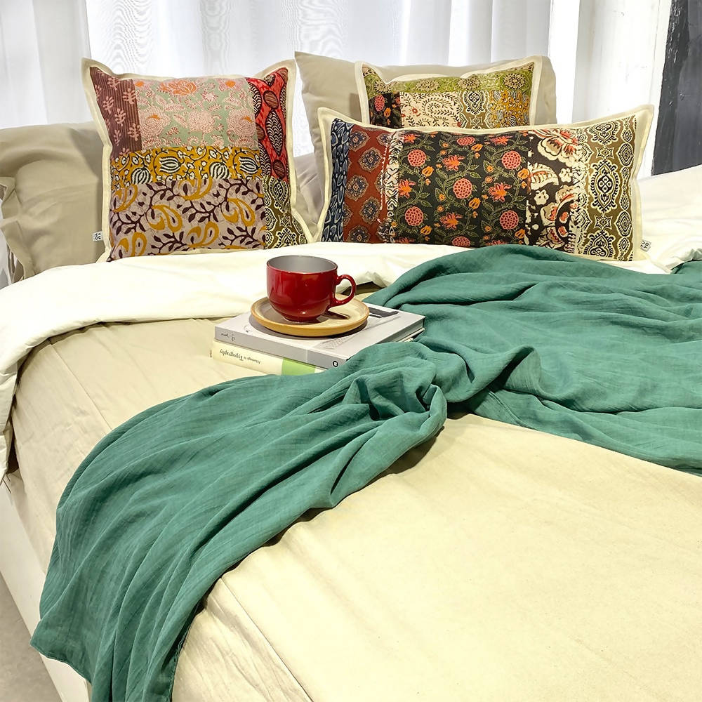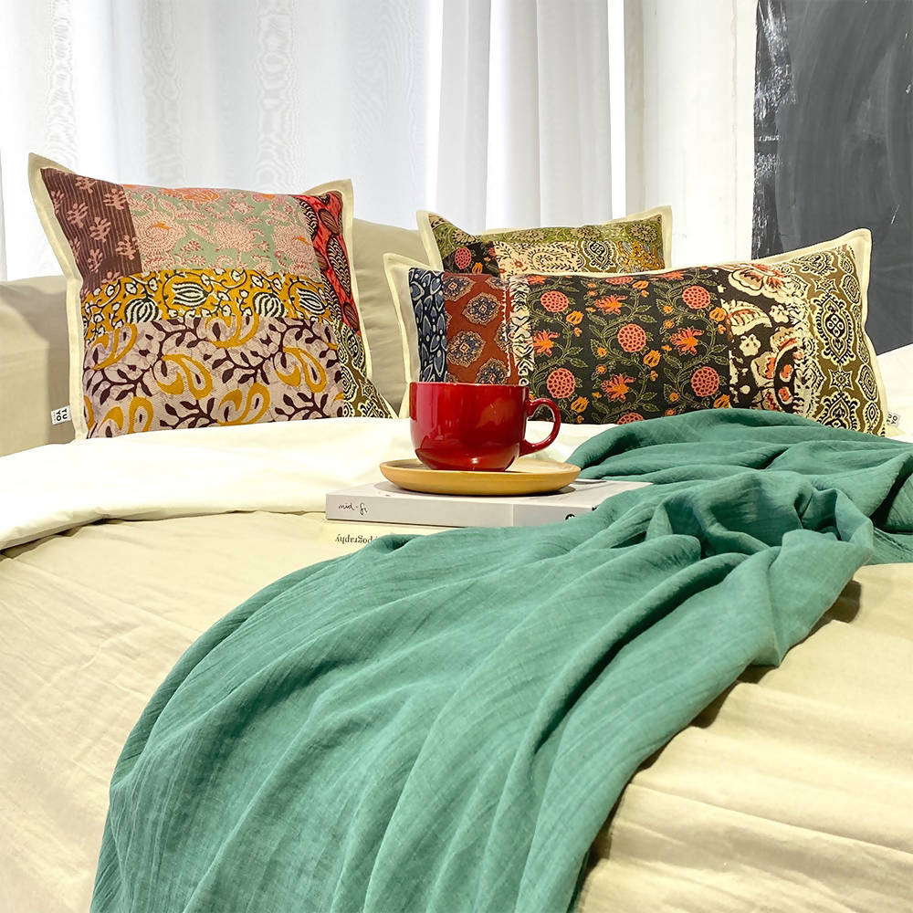 Cojín Boheme-Blanca en linet estampado 70×35 cm.