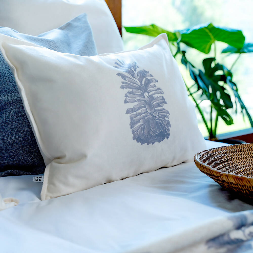 Los cojines de la Colección Bosque son el reflejo de la sofisticación y la belleza. Basada en ilustraciones de flora y aves nativas, estos cojines se verán preciosos en tú cama o en un sofá, junto a la manta estampada de la Colección.