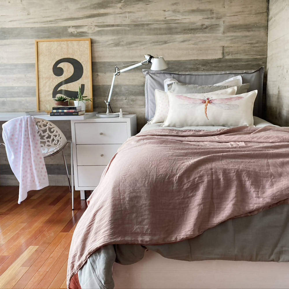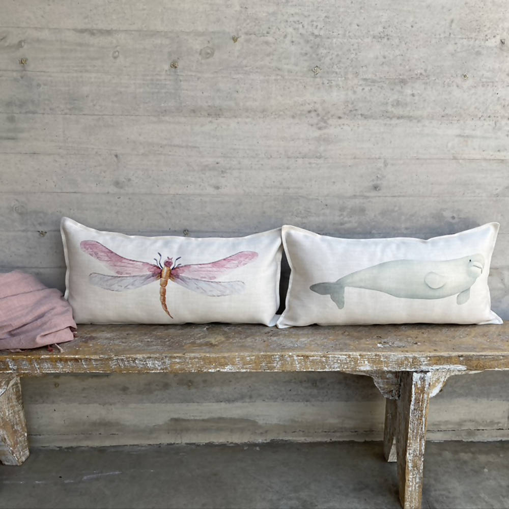 Precioso cojín en Linet (lino con poliéster) crudo estampado de 70x35 cm.