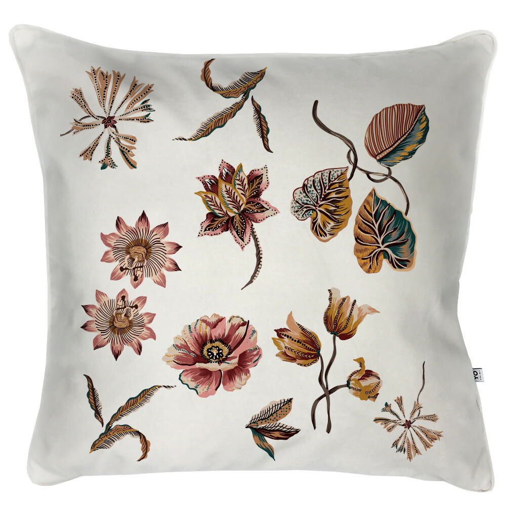 Precioso cojín en Velvet crudo estampado de 60 x 60 cm., con suave textura.