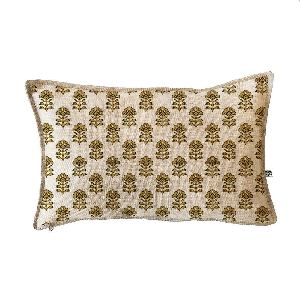 Cojín Paraiso 4 en linet arena estampado 50 x 30 cm.