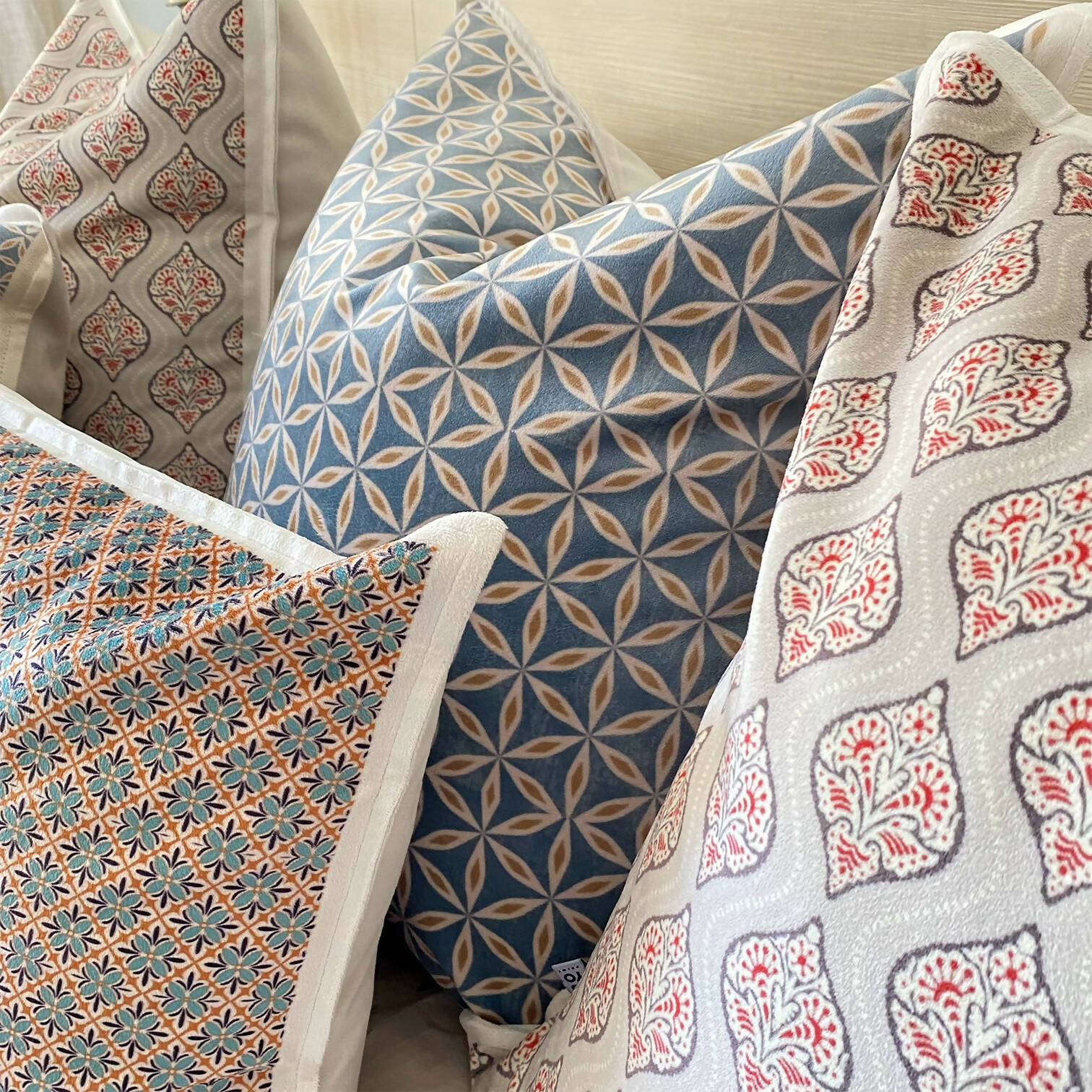 Precioso cojín en Velvet crudo estampado de 60 x 60 cm., con suave textura.