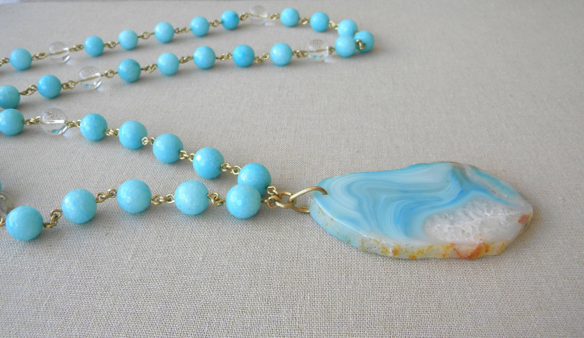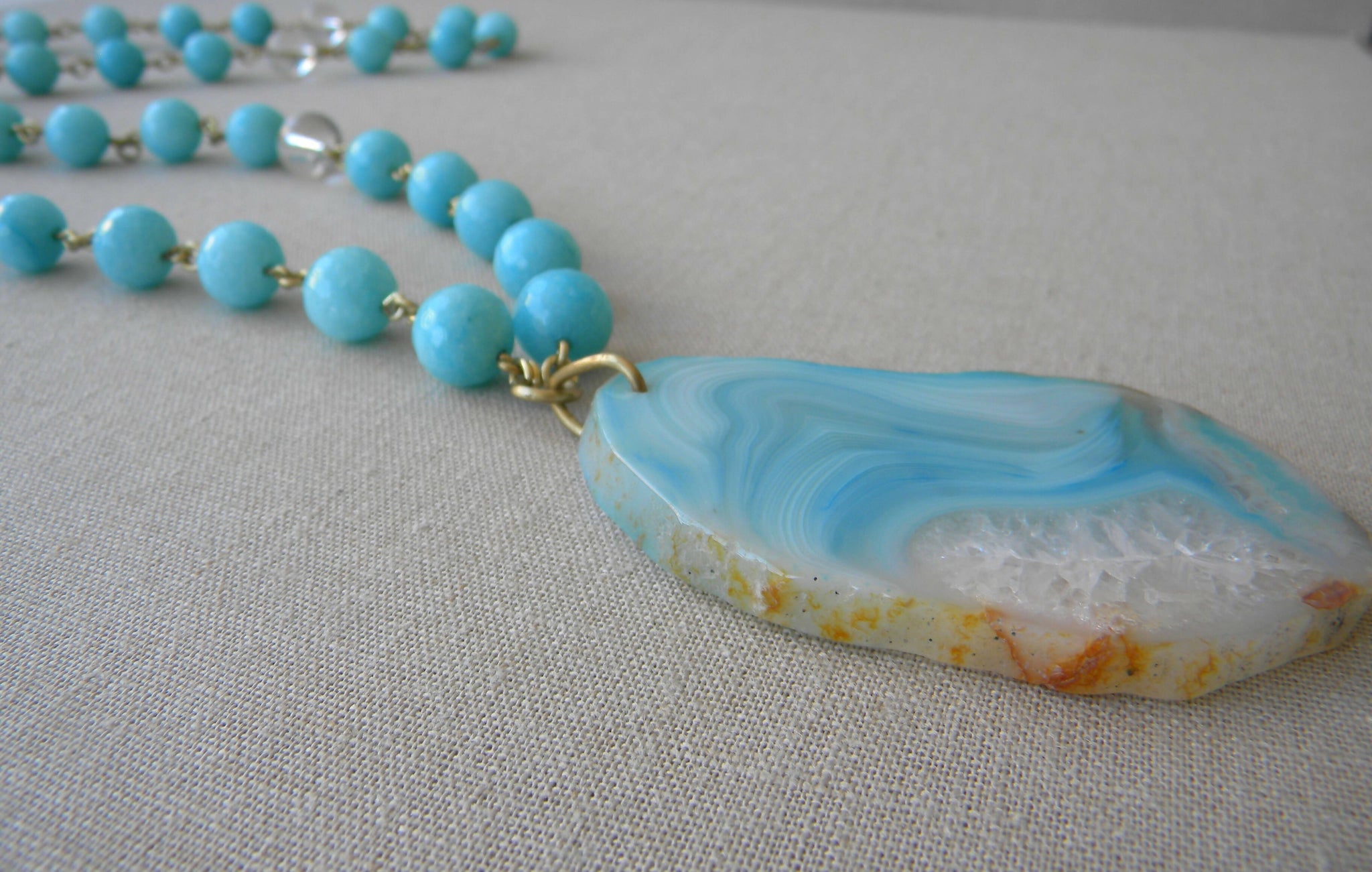 COLLAR LARGO ÁGATAS Y CUARZO CELESTE TURQUESA