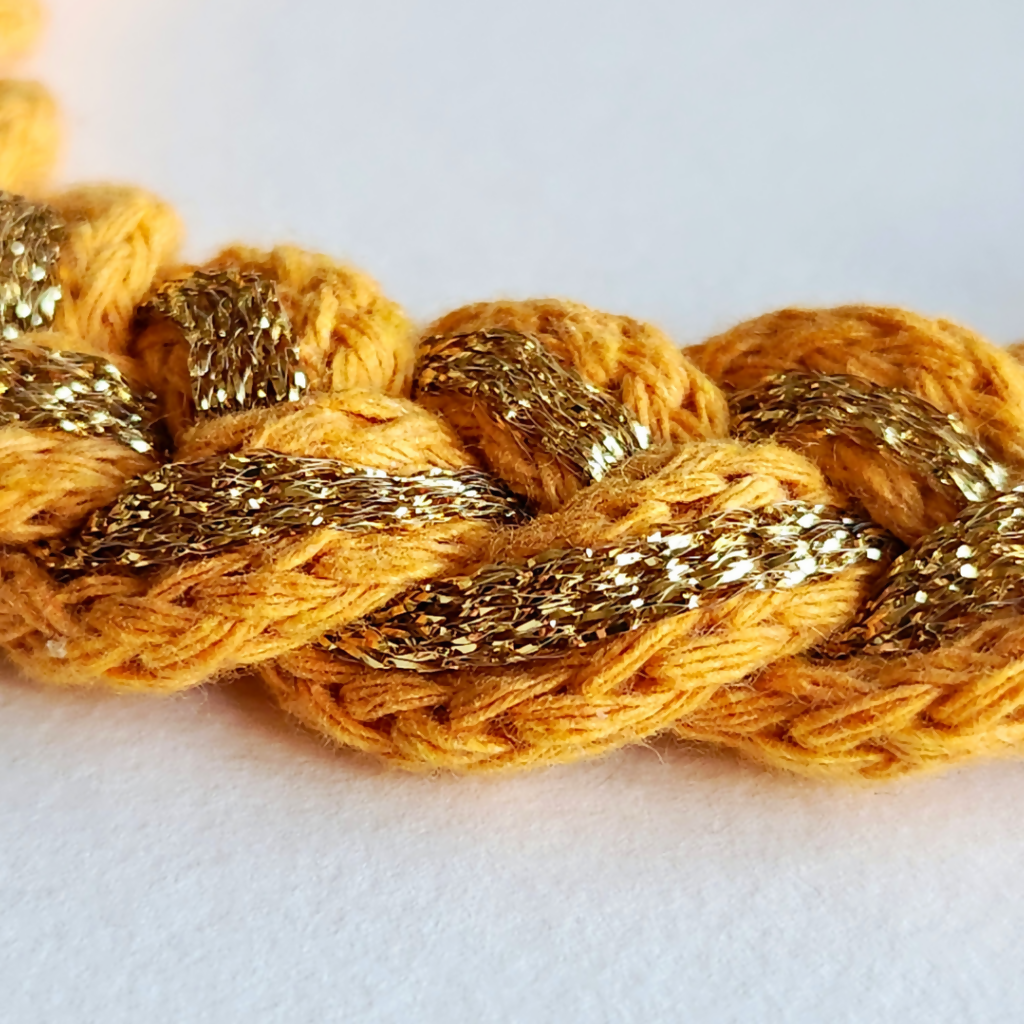 ·         Materiales: cordón de algodón, lurex búlgaro, broche tubo imán o cierre de langosta