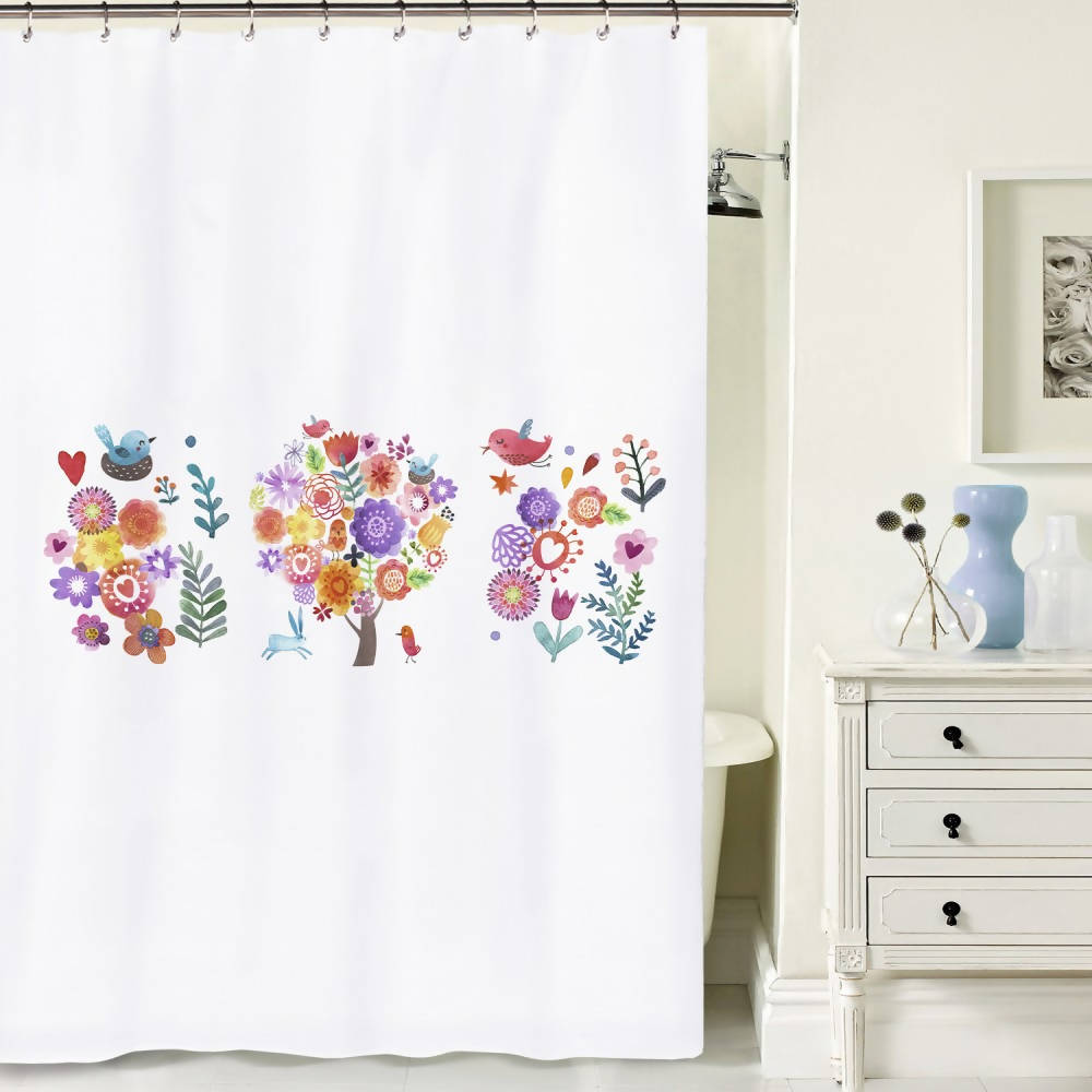 Cortina de Baño Stella elaborada en algodón blanco 180 x 180 cm. Parte superior reforzada con 12 ojales.
