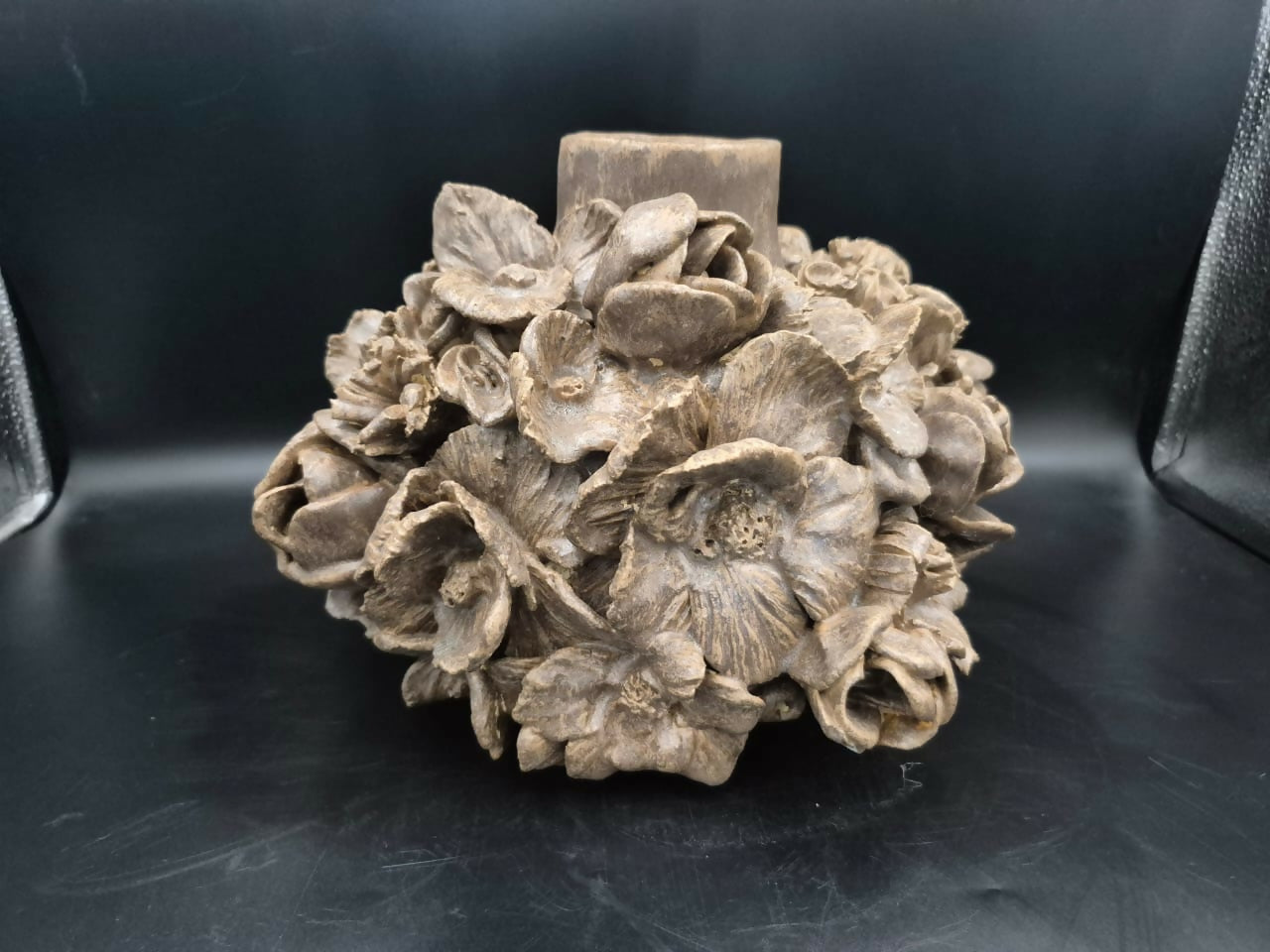 Lindo objeto decorativo de cerámica gres, con aplicación de flores