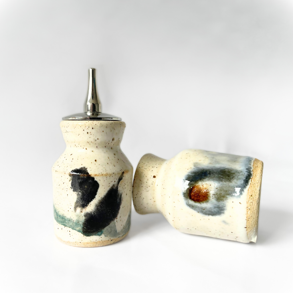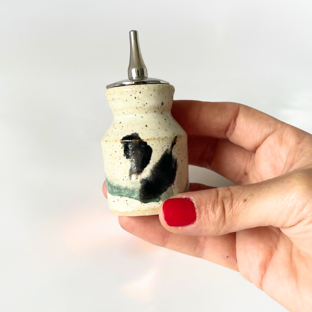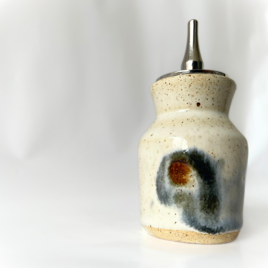 De cerámica gres con tapa metálica; una pieza elegante y funcional para dosificar con precisión el endulzante líquido.