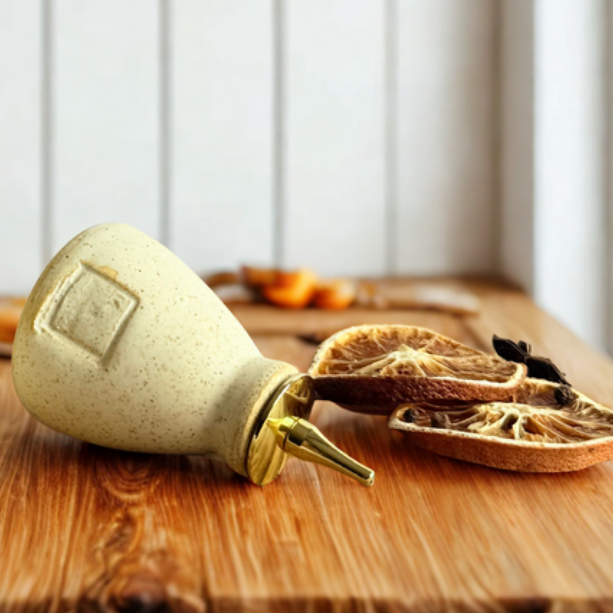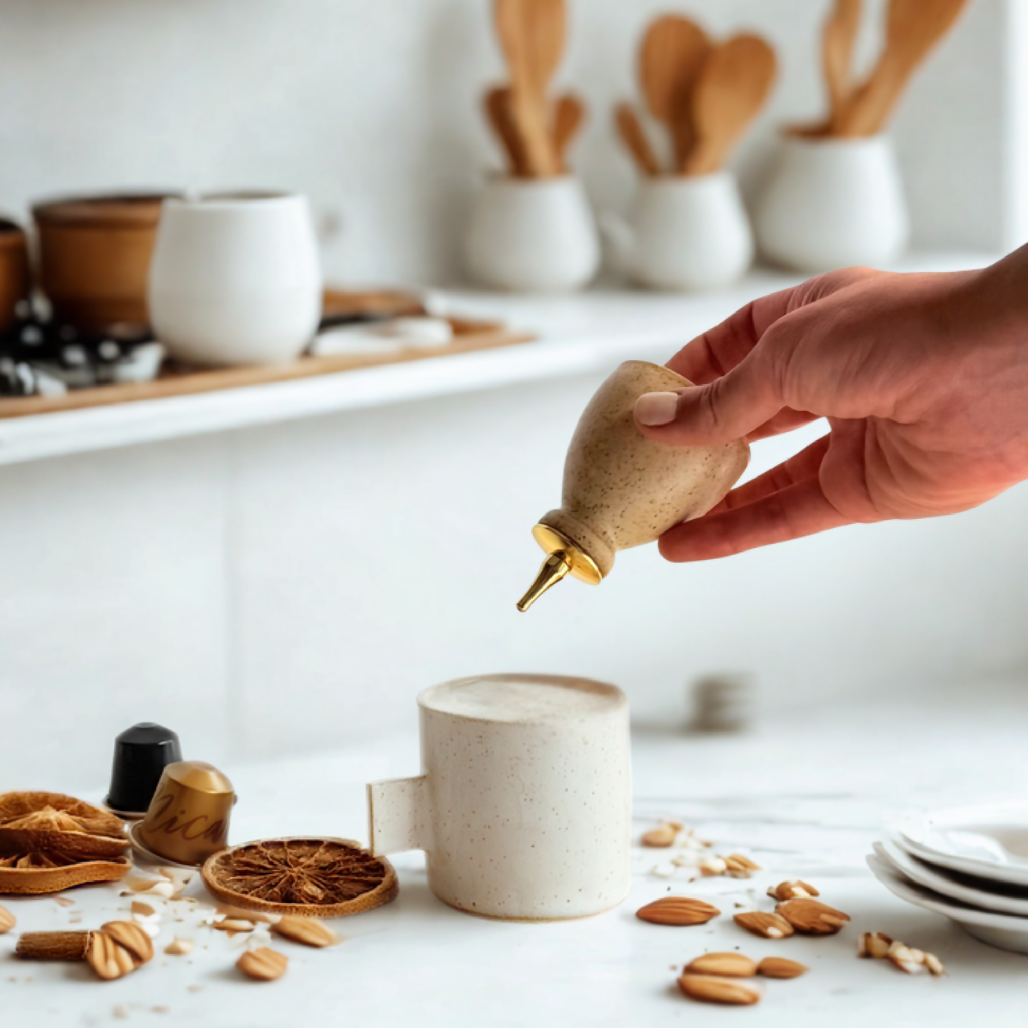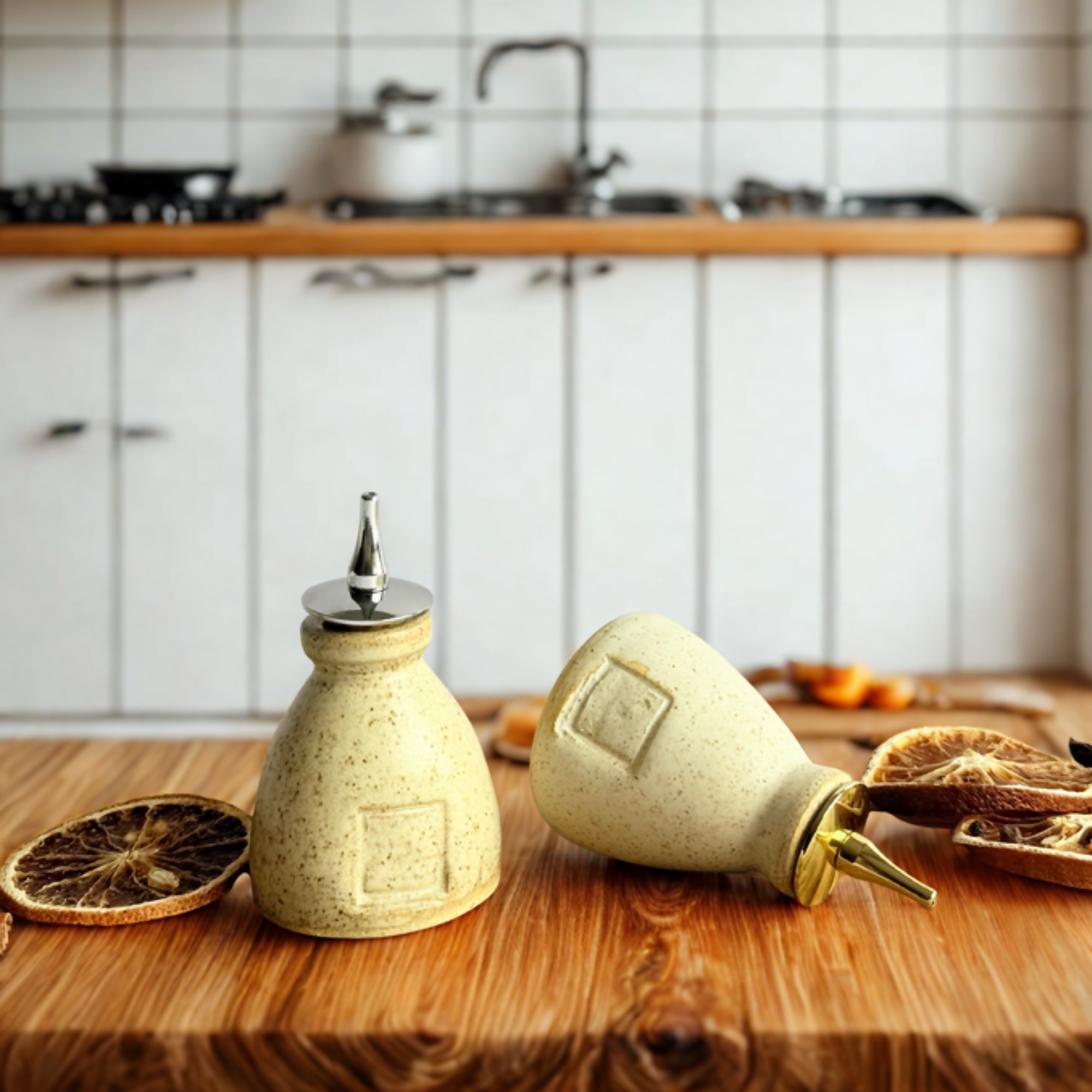 De cerámica gres con tapa metálica; una pieza elegante y funcional para dosificar con precisión el endulzante líquido.