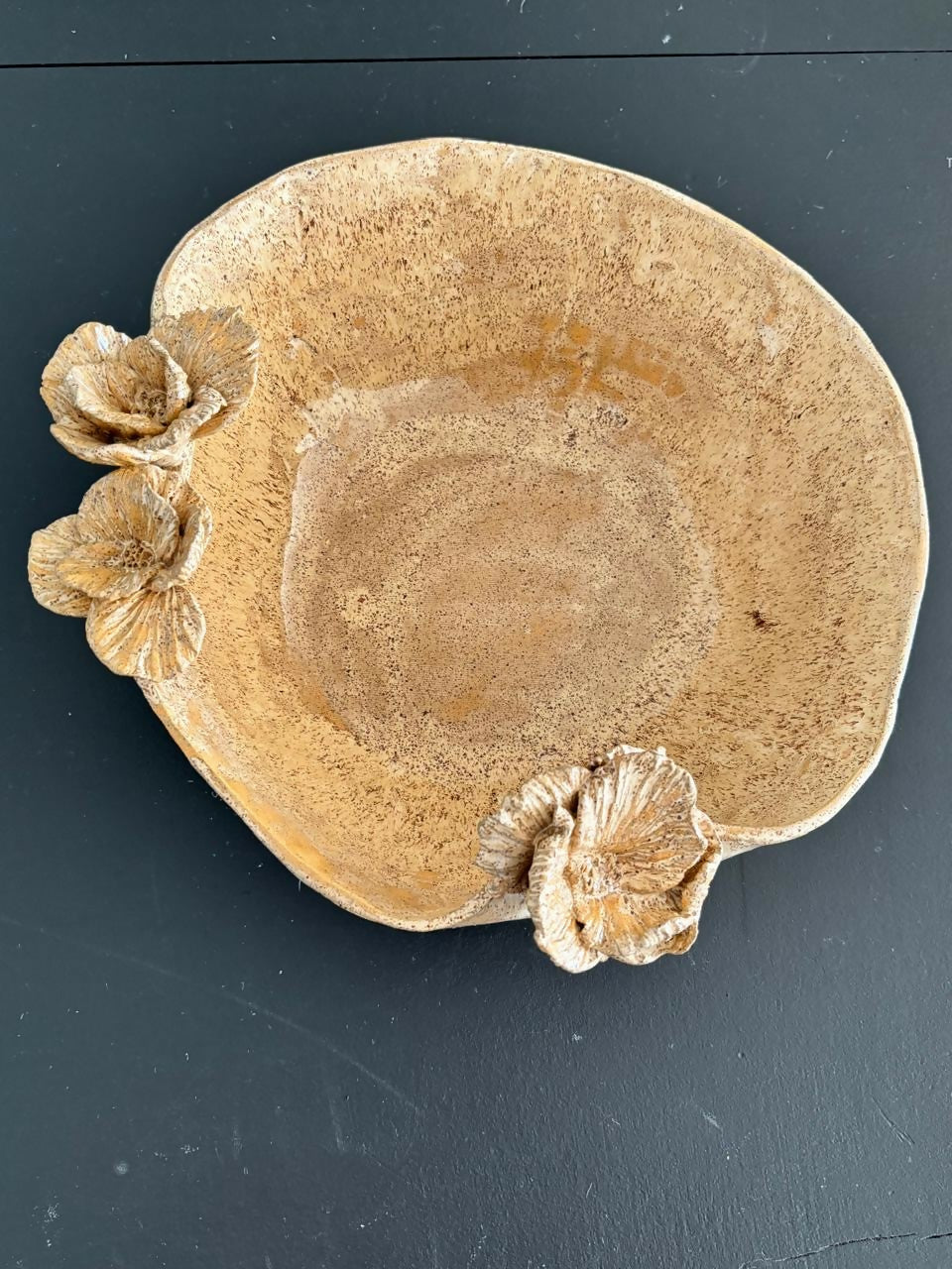 Linda ensaladera grande de cerámica gres con aplicación de flores