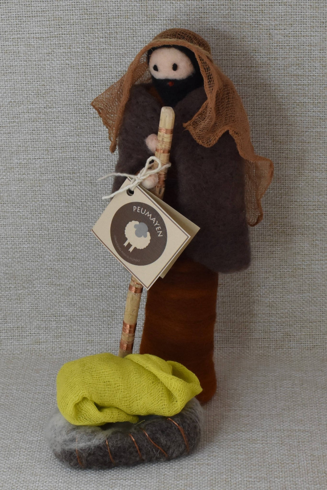 Hecha 100% a mano con vellones de lanitas de ovejas de Chiloé-Chile.