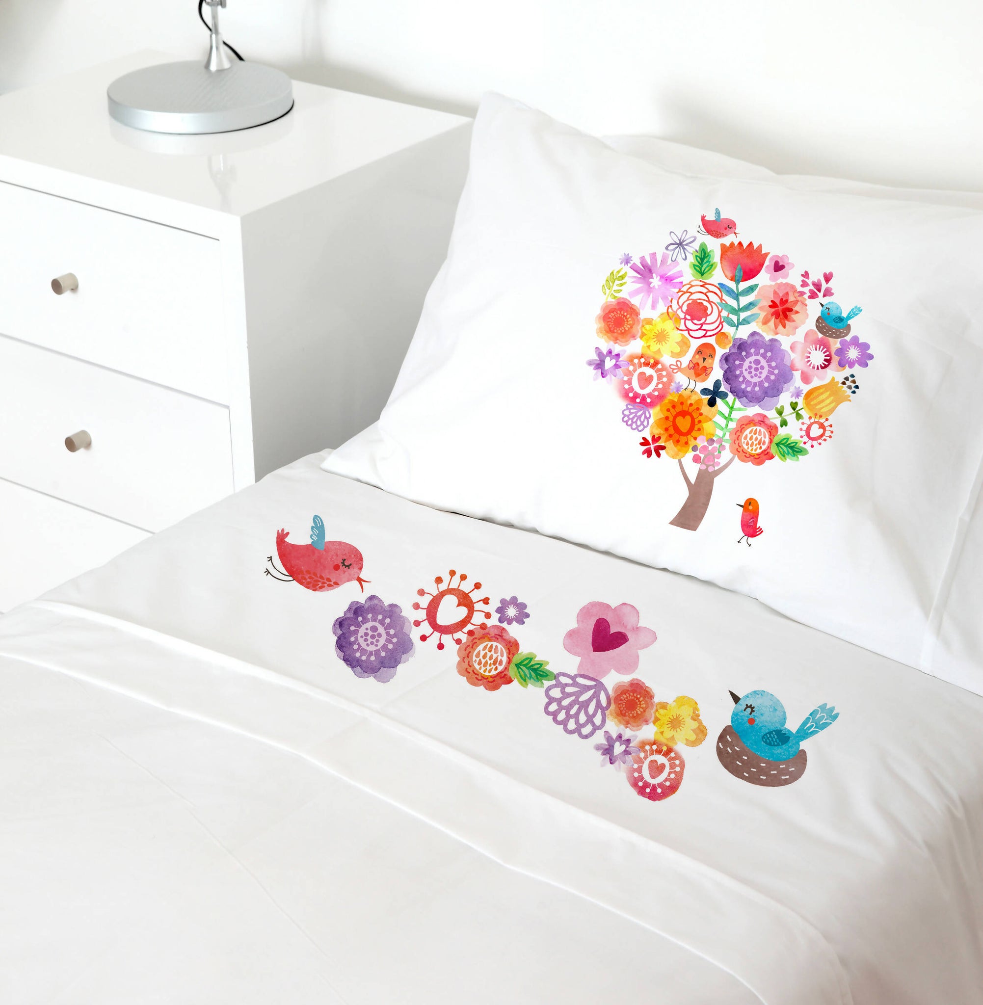Incluye Sábana bajera, Sábana encimera y funda de almohada.