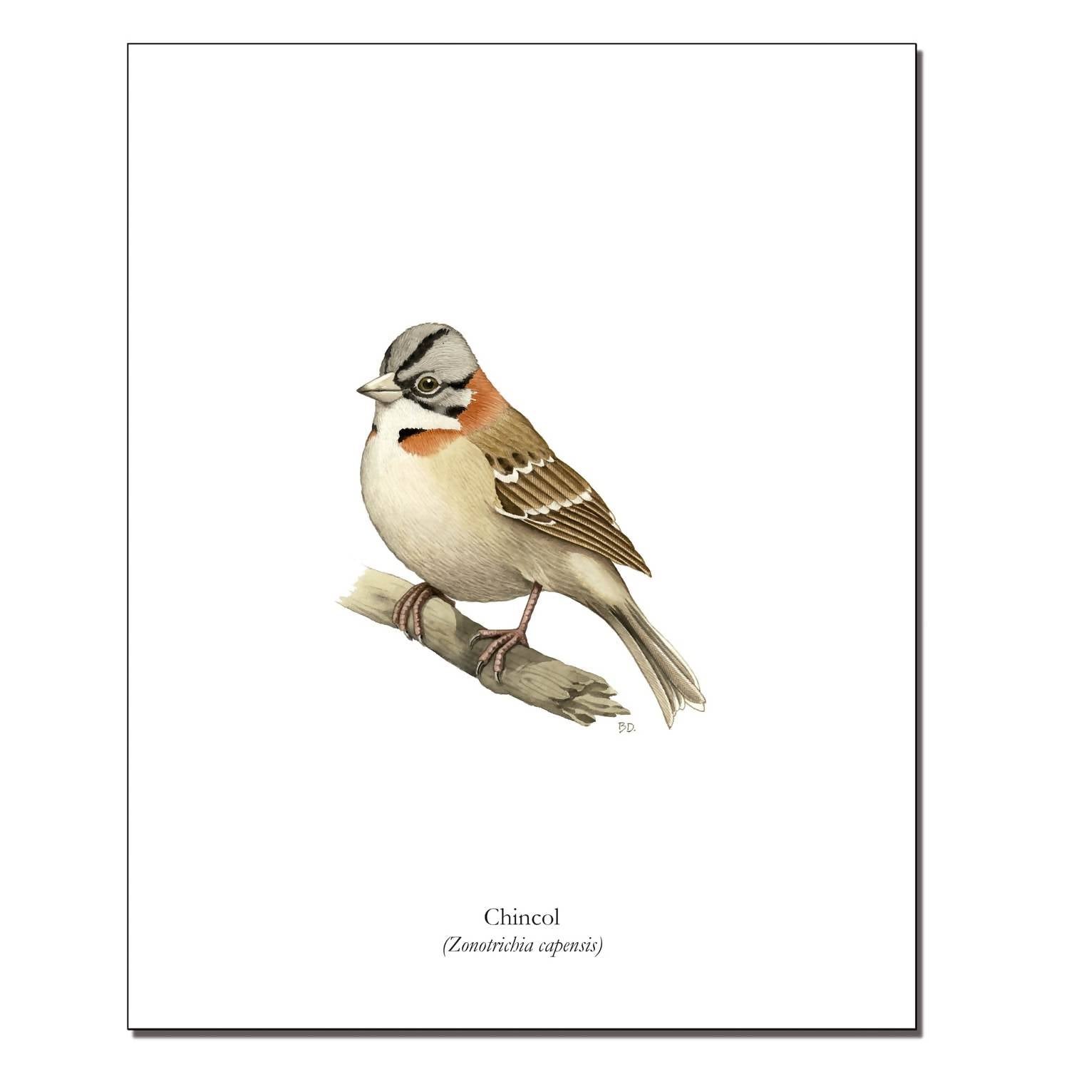 Lámina con ilustración Chincol - Colección Pájaros de Chile