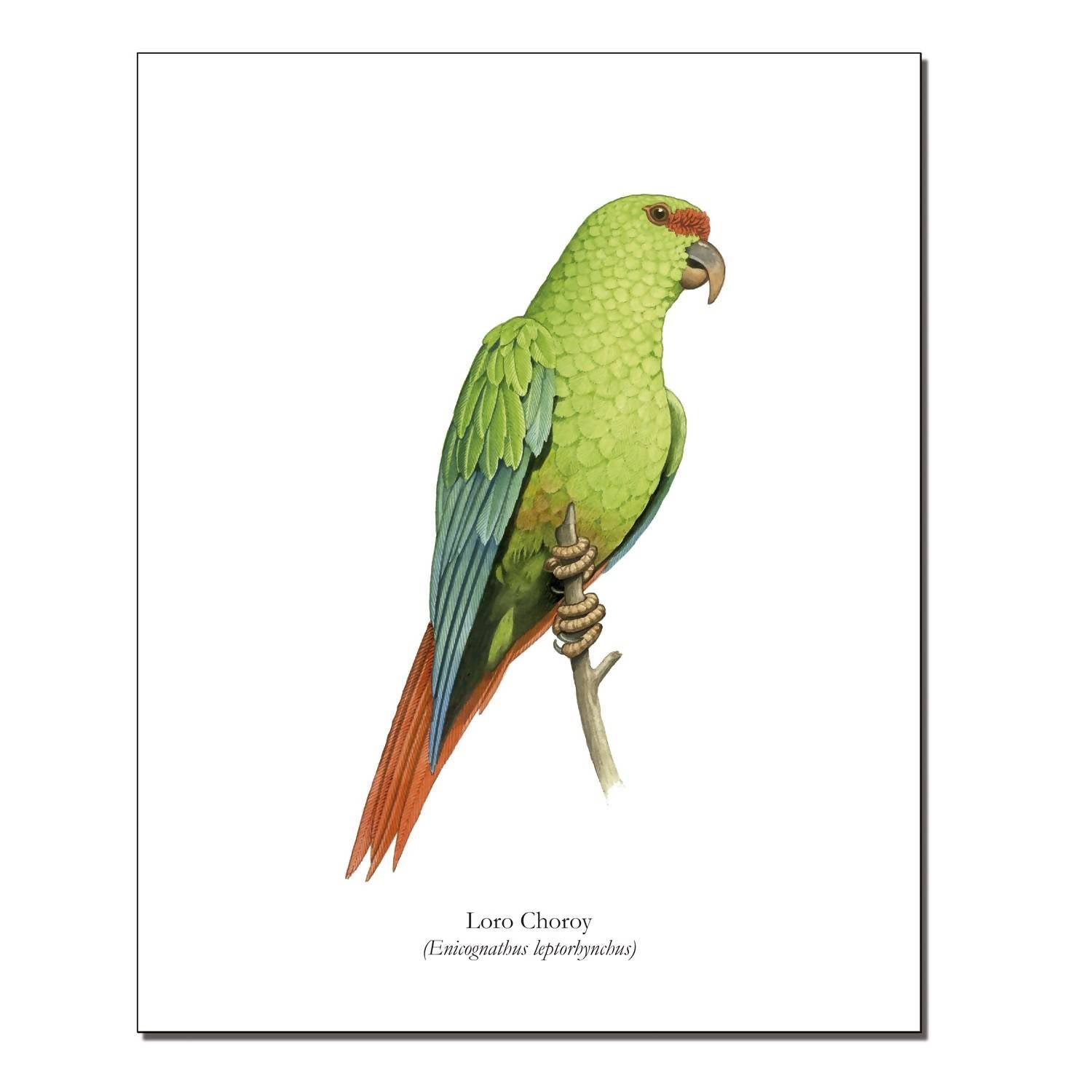 Lámina con ilustración Loro Choroy - Colección Pájaros de Chile
