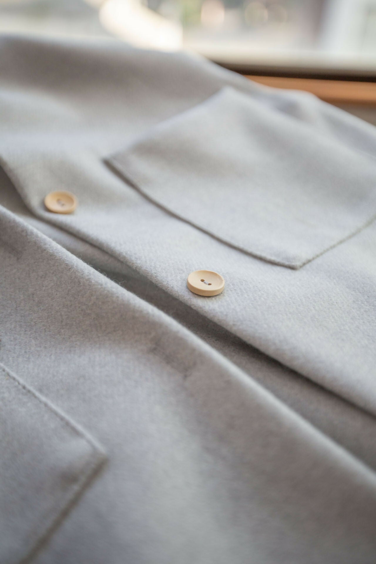 Tiene 3 botones de madera para cerrar lo justo y necesario y 2 bolsillos para los esenciales. Muy práctico.