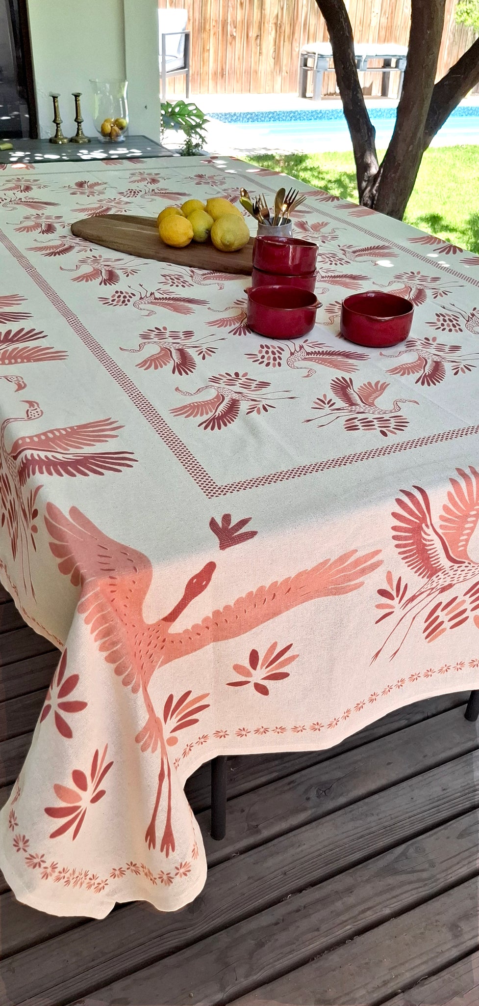 Descubre la nueva línea de mantelería Ulmmo, confeccionada en 100% algodón y creada para llenar la mesa de elegancia y carácter. Inspirada en la gracia y belleza de los flamencos, esta colección combina diseño artístico con la suavidad y calidad natural del algodón puro.