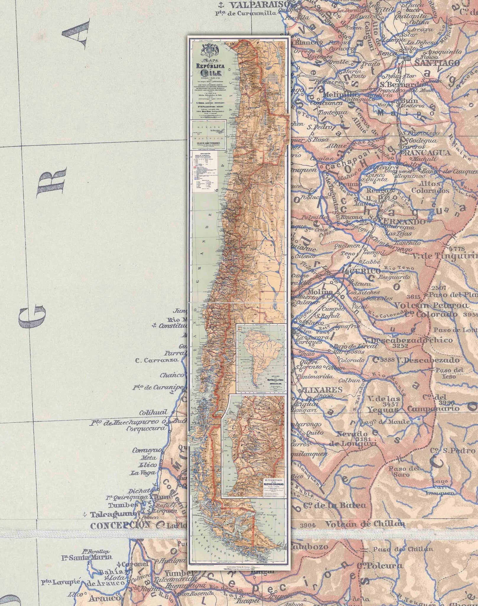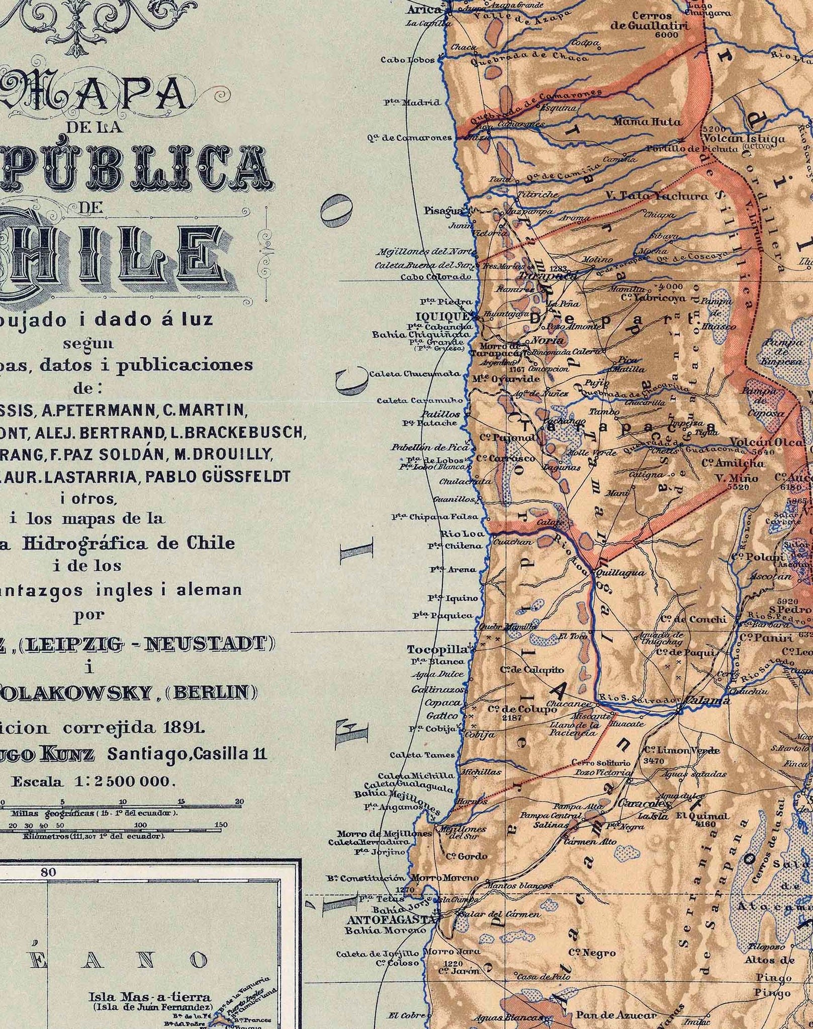 Un detallado registro cartográfico de Chile en el año 1891. Año en que Chile se encontraba en una compleja Guerra Civil, que culmina con el derrocamiento del Presidente Balmaceda.