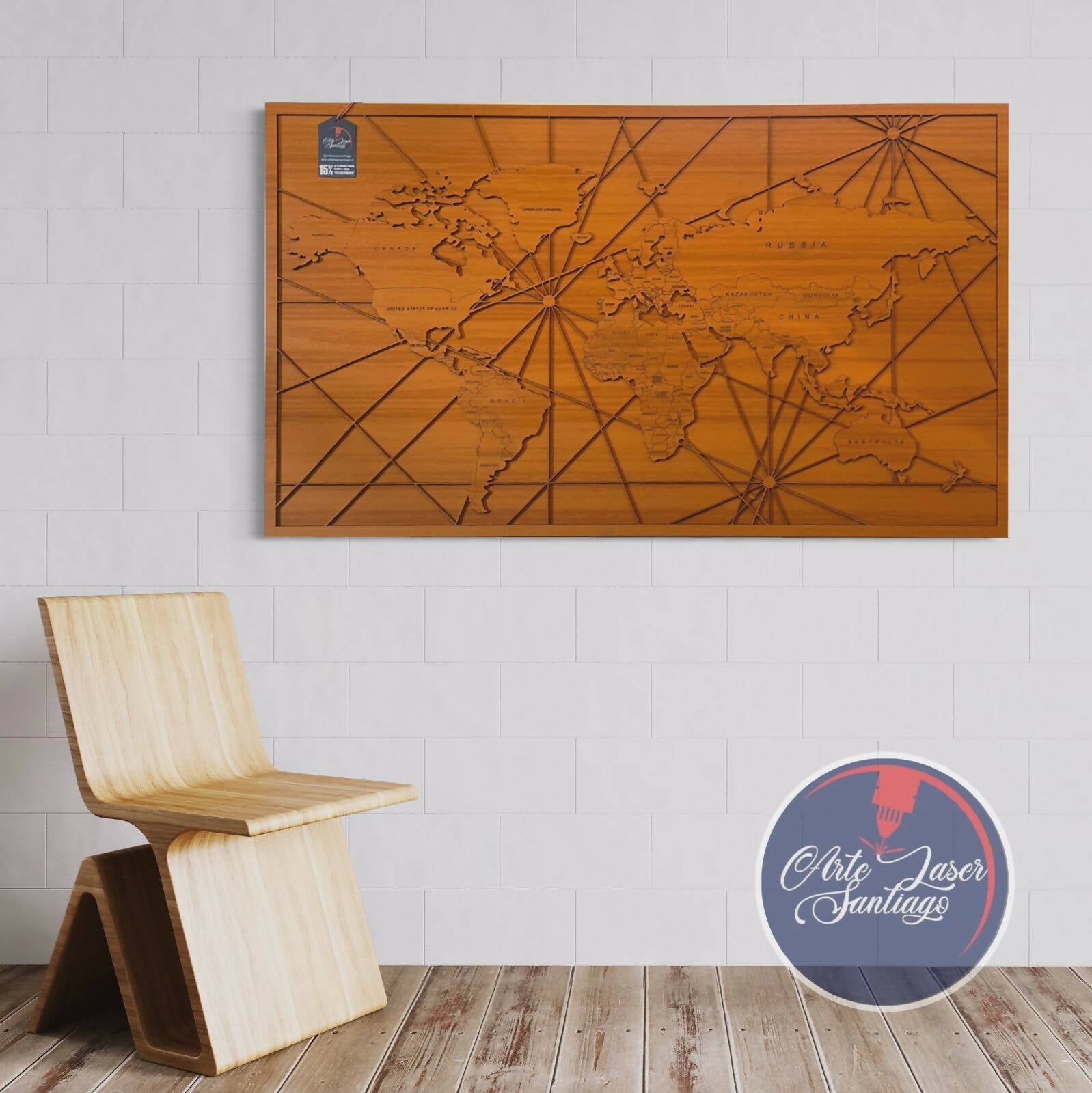 Gran variedad de Planisferios colores Paìses grabados en madera MDF de 6 mm de grosor.