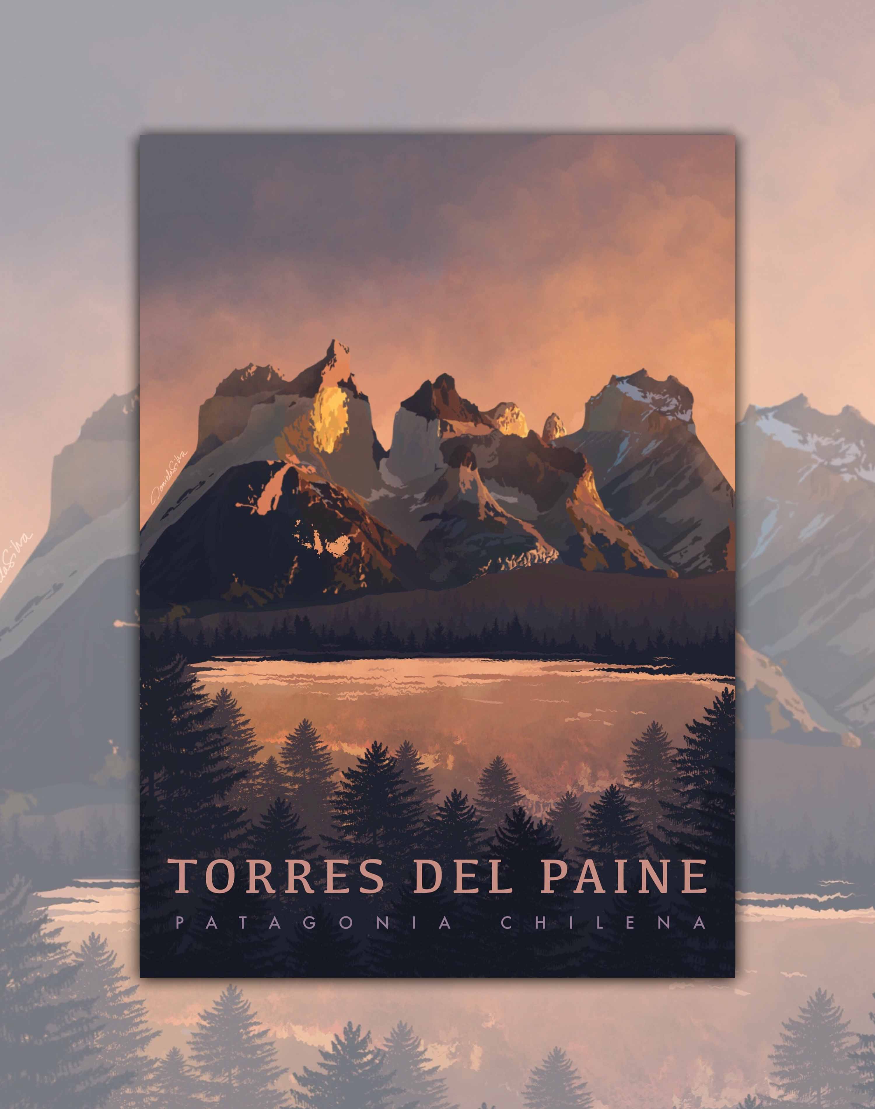 Poster Torres del Paine Atardecer - Lámina