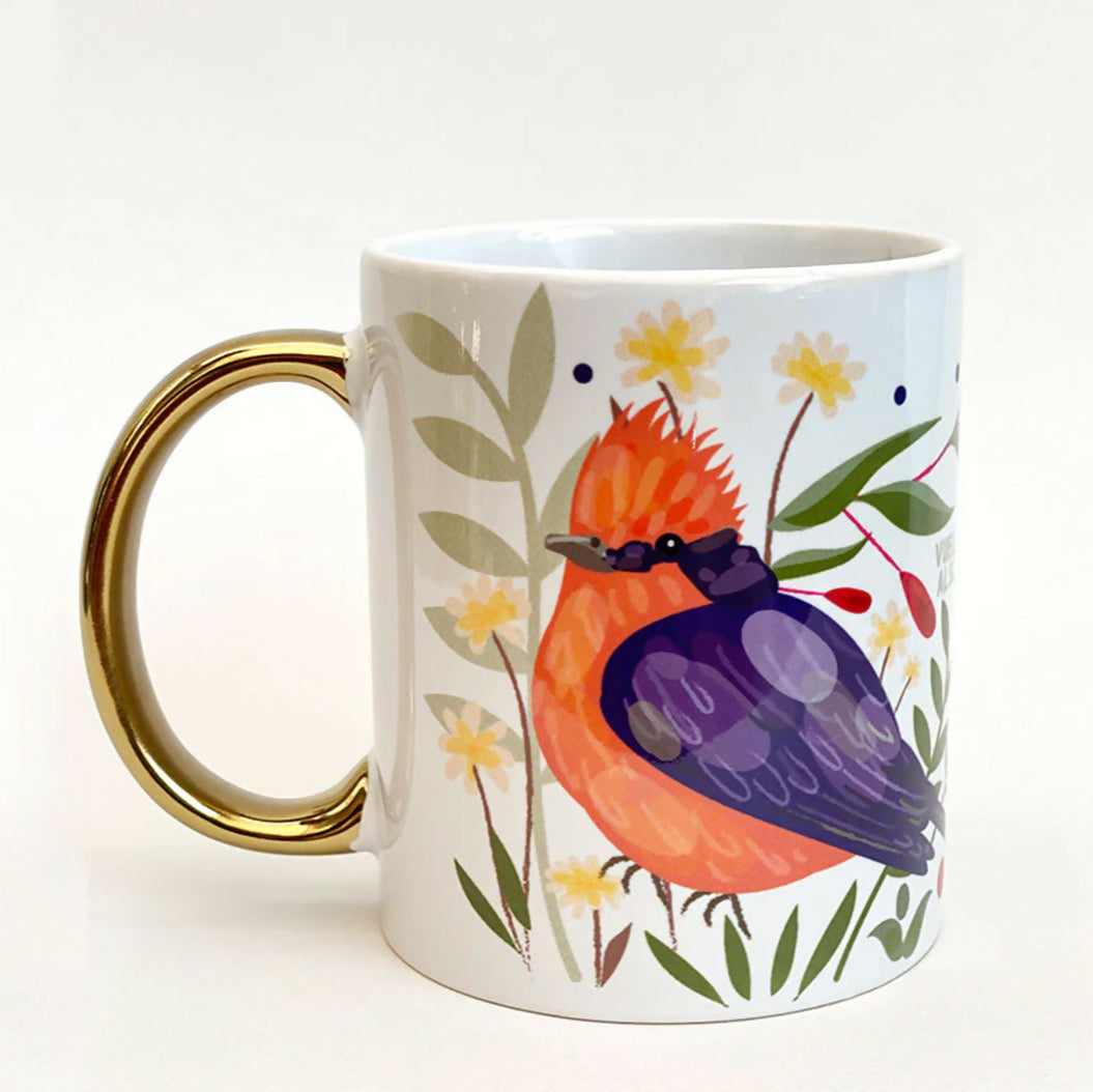 Lindo y elegante tazón cerámico, adornado con nuestra nueva colección Paisajes y Fauna: Pequeñas Aves de Chile al Atardecer. En este diseño lo adorna el llamativo Saca Tu Real Macho, quien con su bello plumaje adorna los paisajes del Norte de Chile.