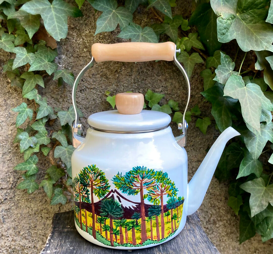 Hermosa tetetra enlozada pintada a  mano con flora chilena