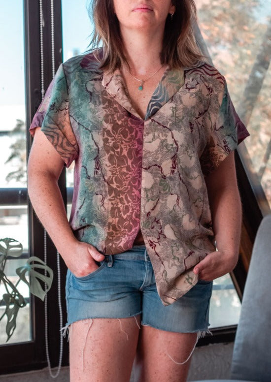 Está confeccionada con antiguos saris indios, así aseguramos la exclusividad del estampado. Jamás lo verás en otra tienda. El material es seda reutilizada así que te llevas todas las cualidades exquisitas y nobles de la seda además de contribuir a una industria más sostenible apoyando el upcycling Paulamarino