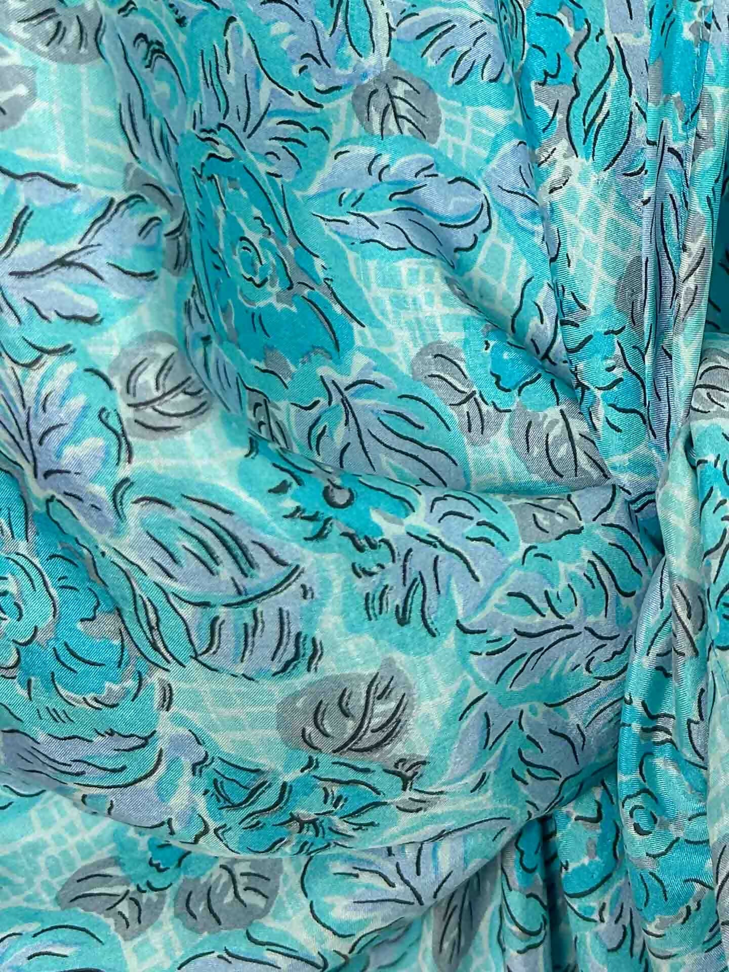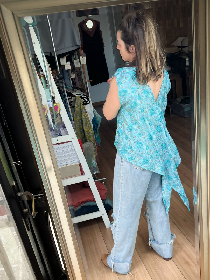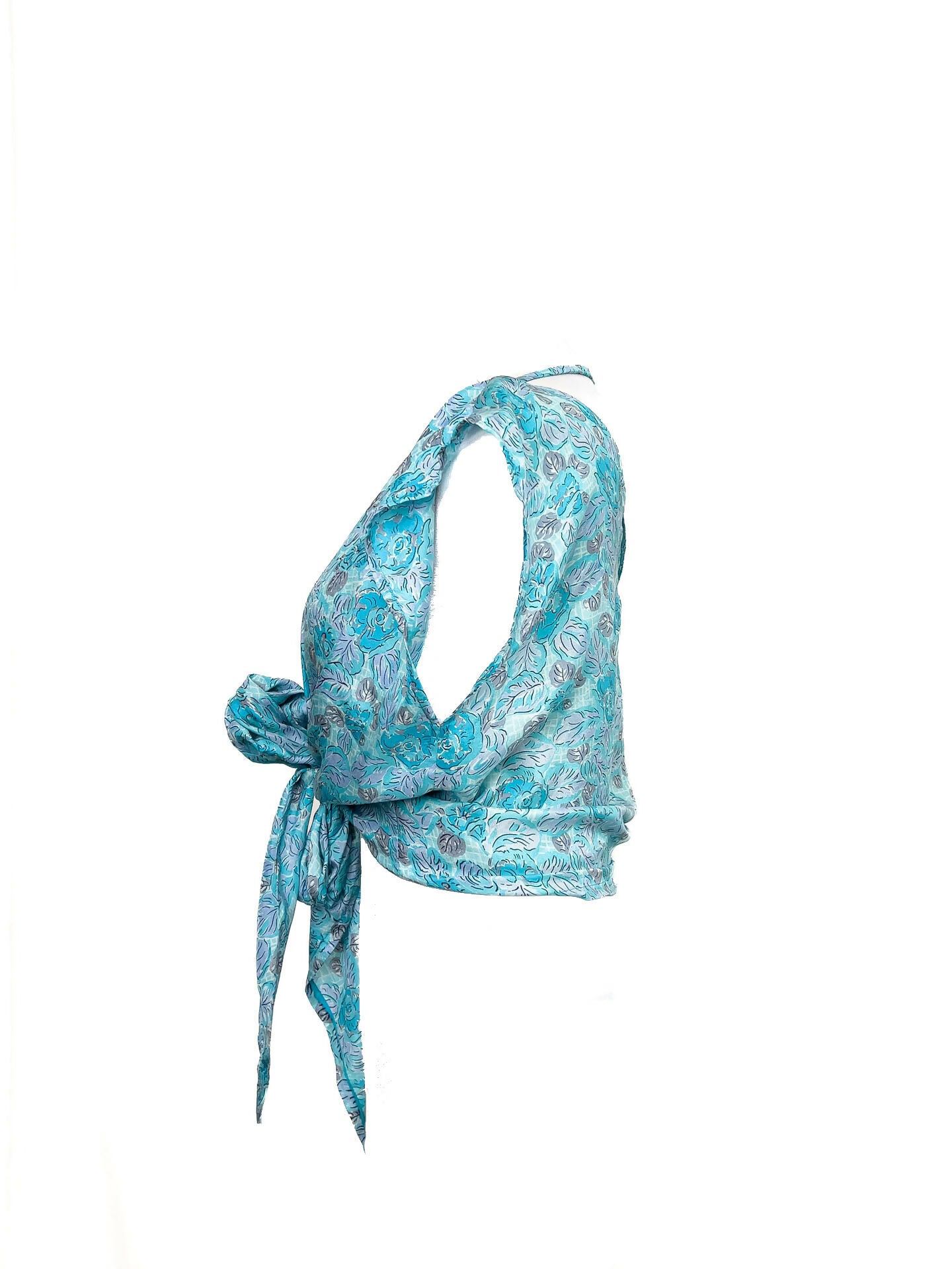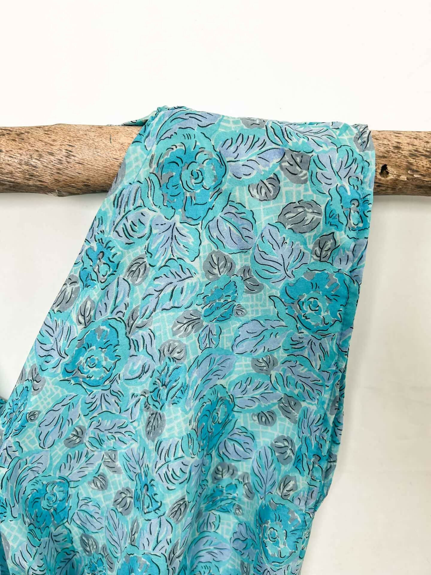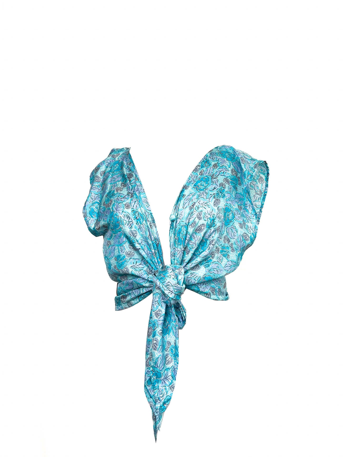 Está confeccionada en seda de antiguos saris indios. Son piezas de seda, únicas, de 5 metros de largo lo que los hace bastante exclusivos, jamás los verás en otra tienda.
